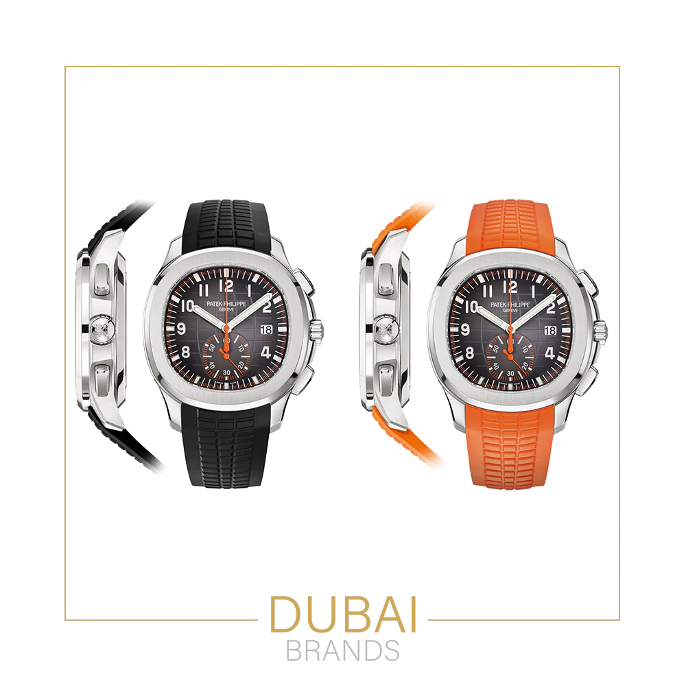 Patek Philippe Aquanaut Chronograph Stainless Steel Black Grid Dial Orange Accents Rubber Strap