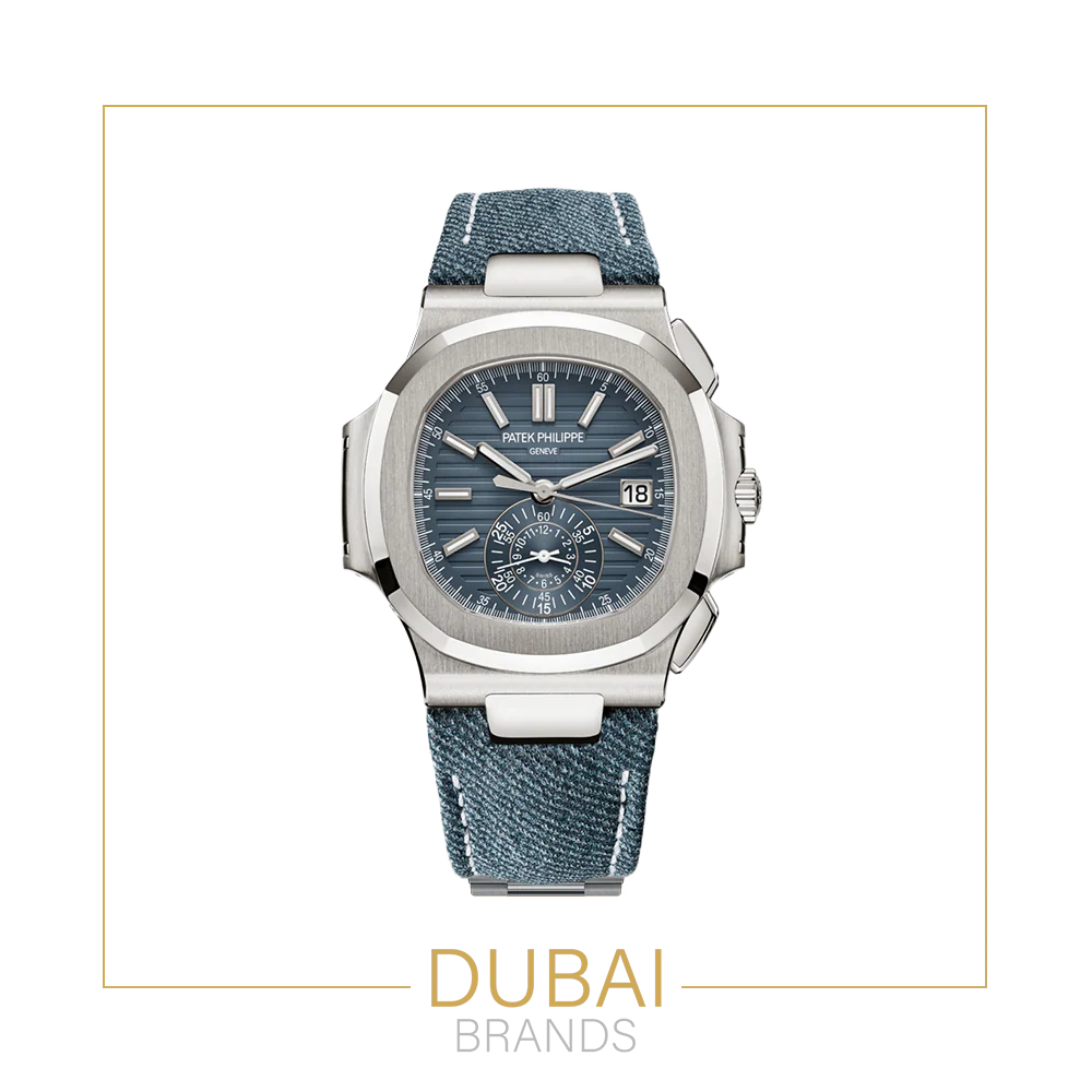 Patek Philippe Nautilus Chronograph Stainless Steel Blue Dial Horizontal Embossed Dial Denim Strap