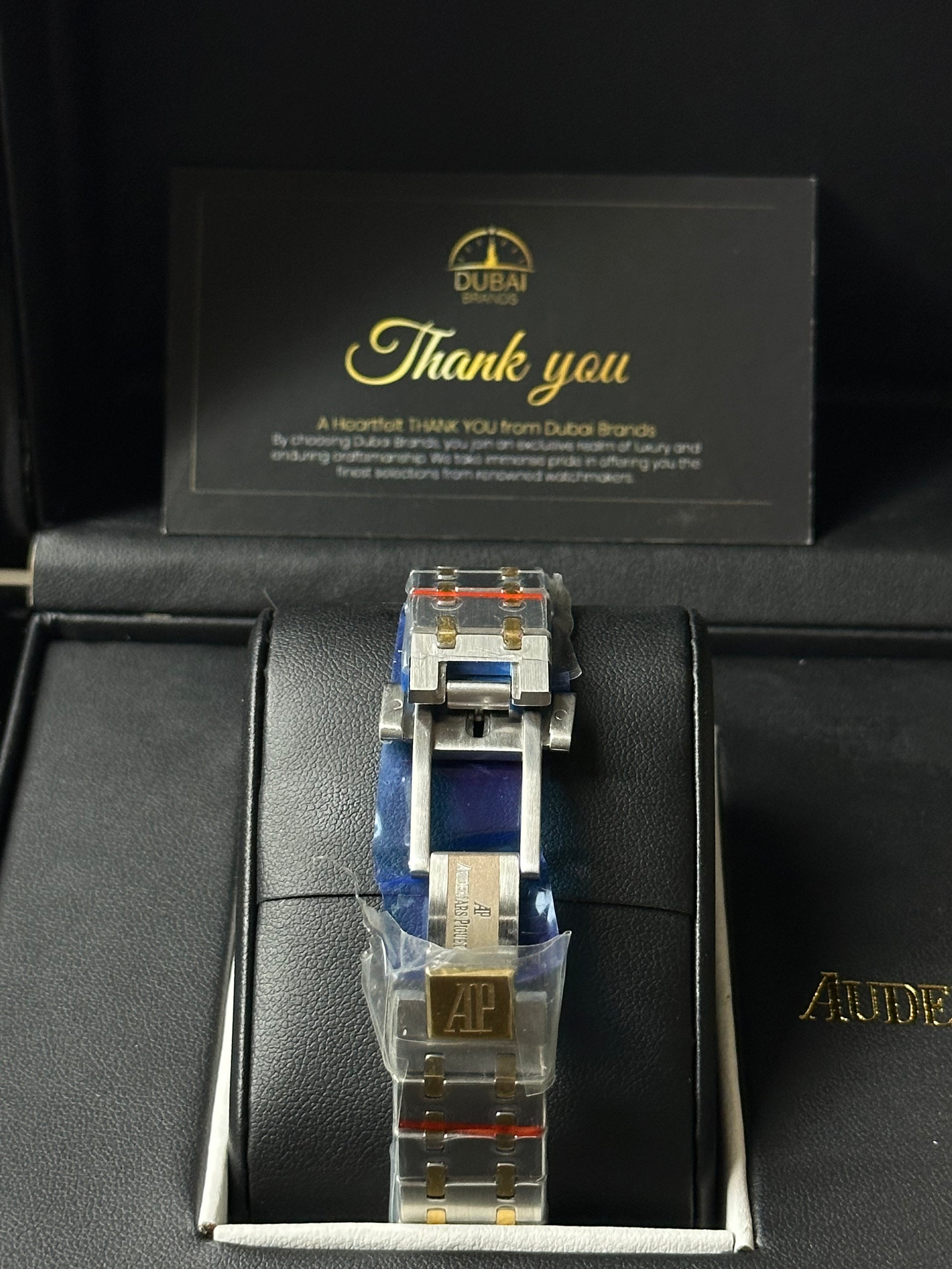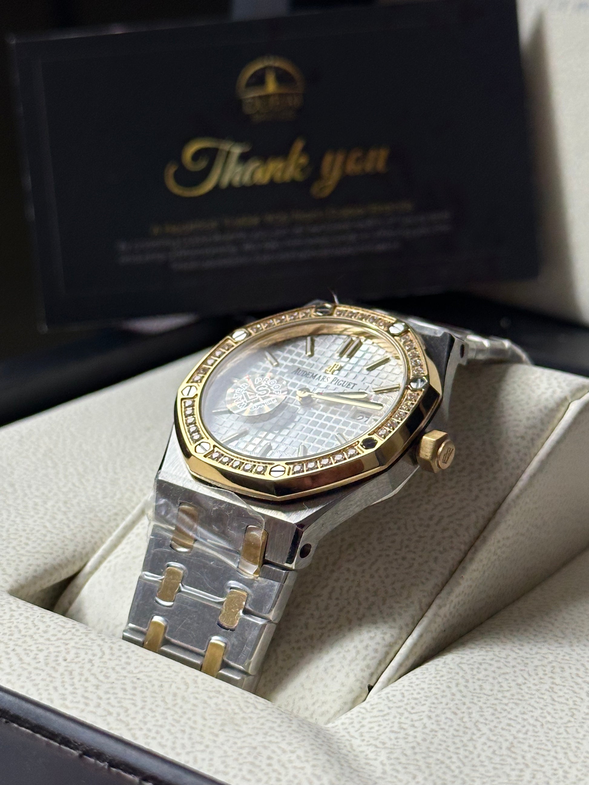 ● Craftsmanship: Accurately mirrors the original Audemars Piguet Royal Oak – features brushed finish, polished gold elements, and an elegant integrated bracelet