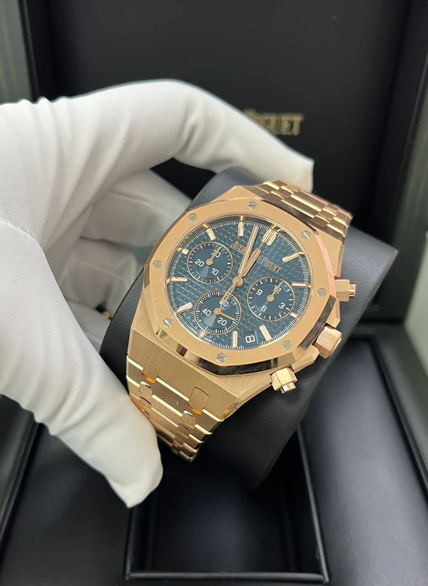 ساعة كرونوغراف رويال أوك من أوديمار بيجيه بمينا زرقاء