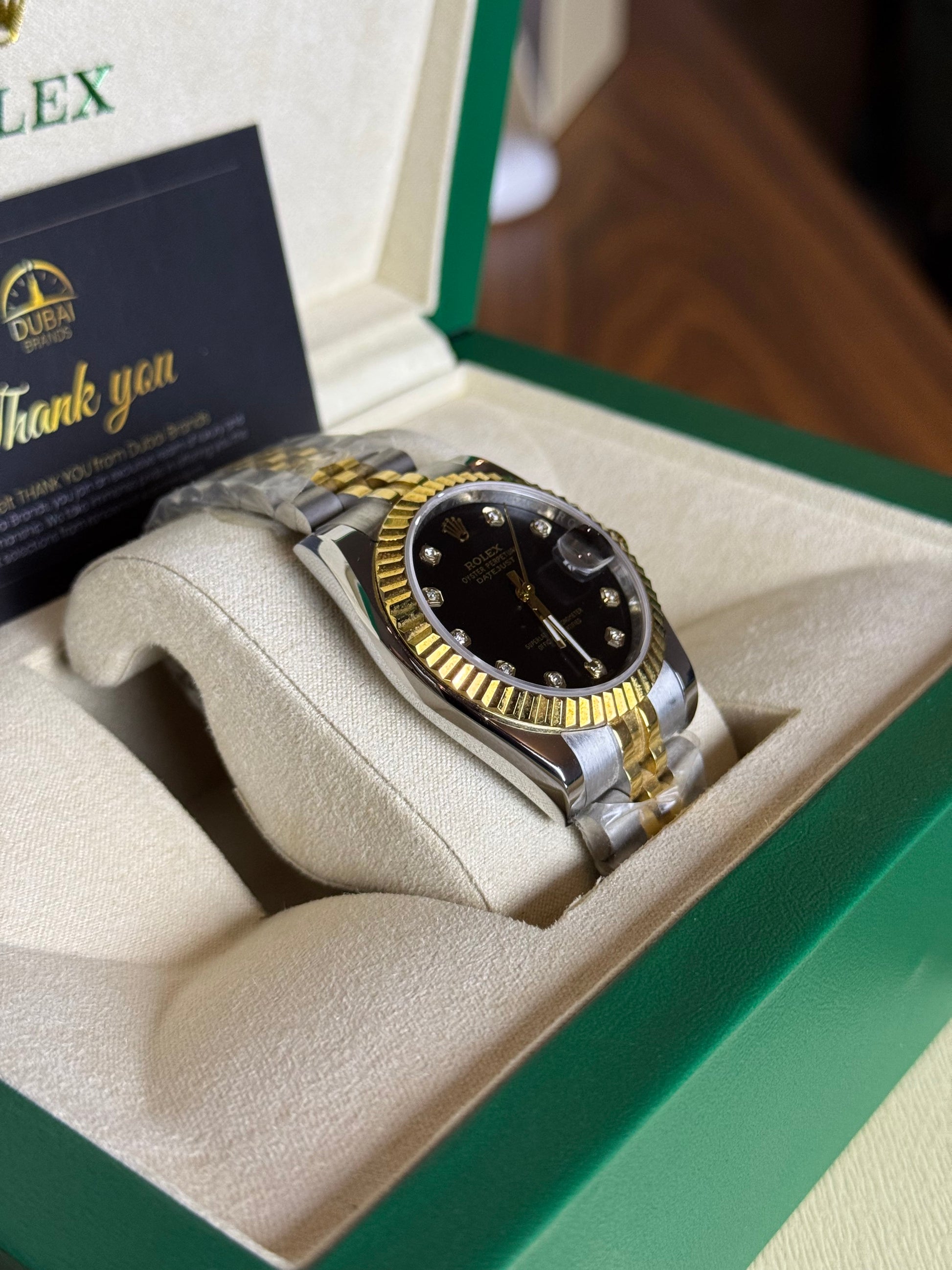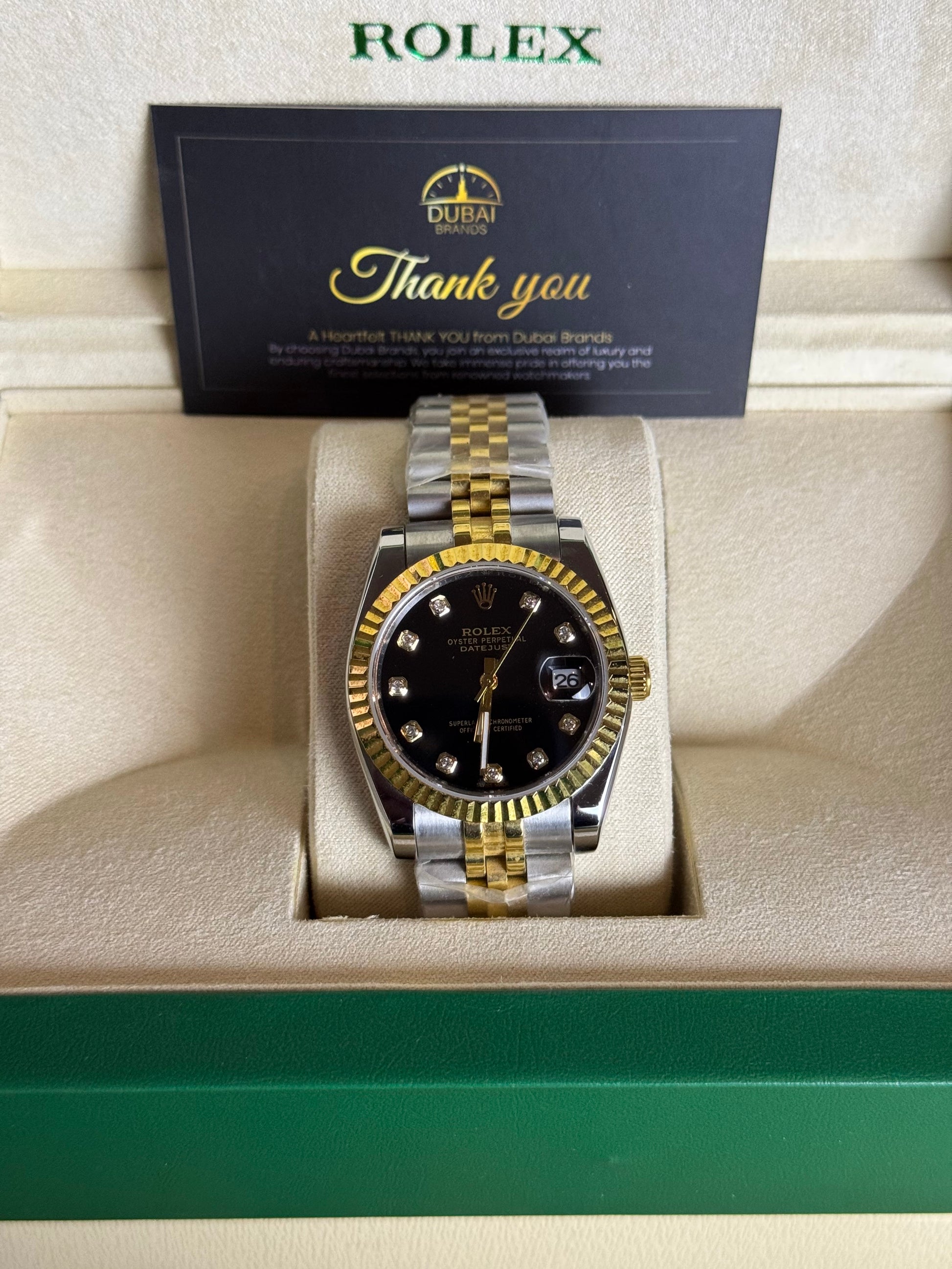 ● Model: Rolex Lady Datejust 31 Black Diamond Dial Yellow Gold Fluted Bezel Two-Tone Jubilee Automatic