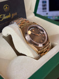 Model: Rolex Day-Date – Dark Grey Sunburst Dial – President Bracelet – Rose Gold Tone