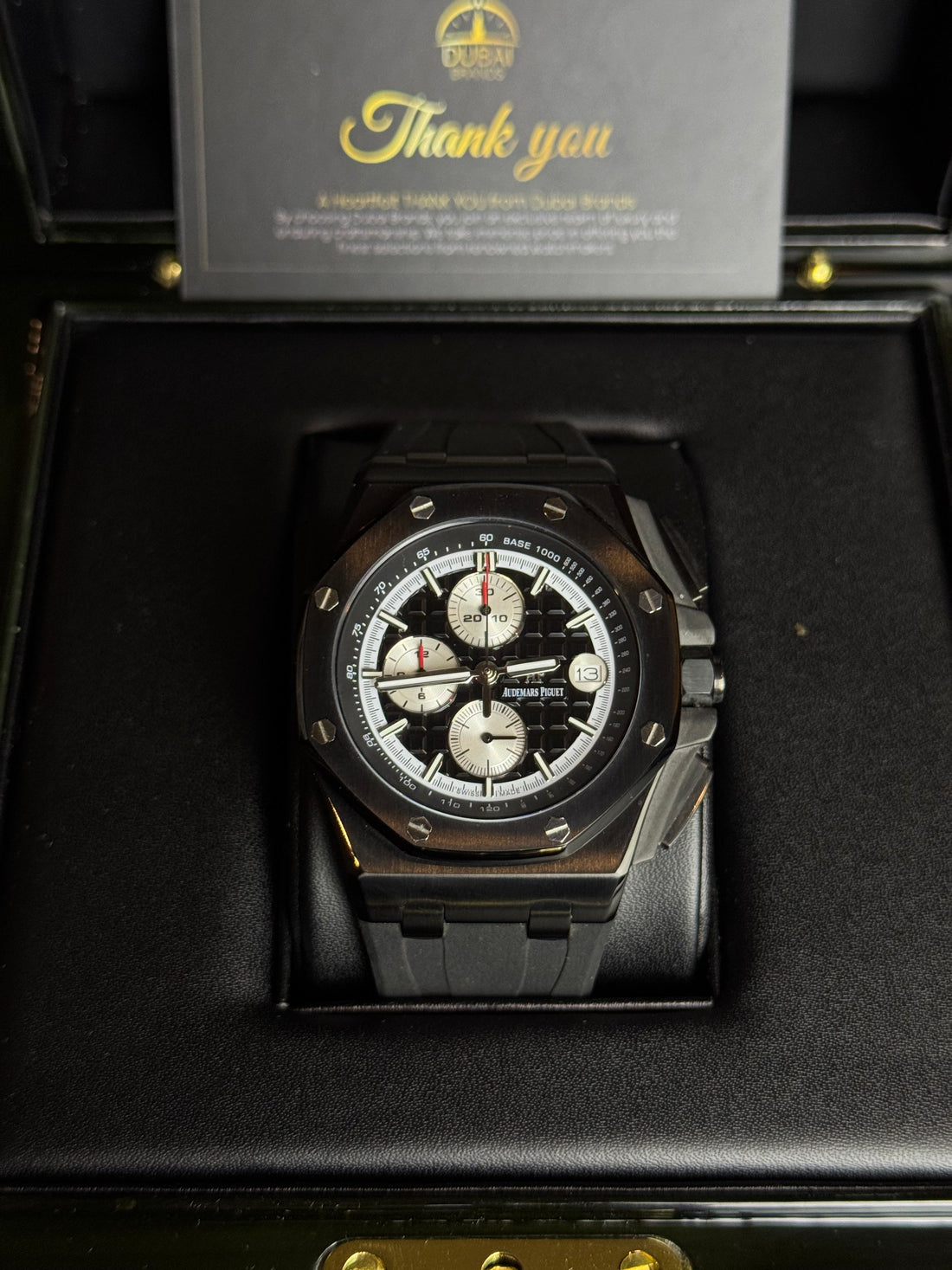 Product Details↓ ● Model: Audemars Piguet Royal Oak Offshore Chronograph – Black Edition● Movement: Japanese...