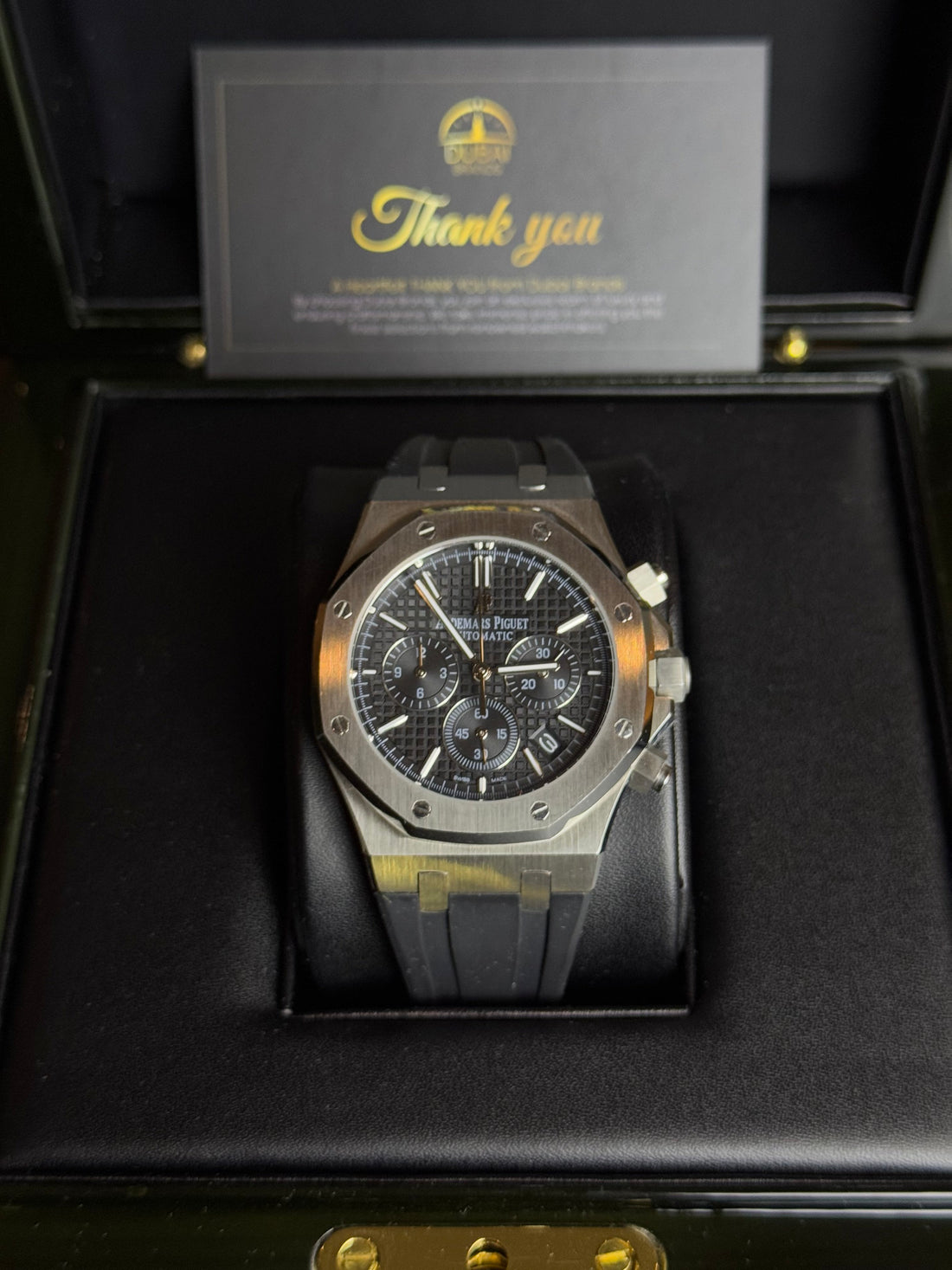 Product Details↓ ● Model: Audemars Piguet Royal Oak Offshore Chronograph – Black Dial Edition● Movement:...