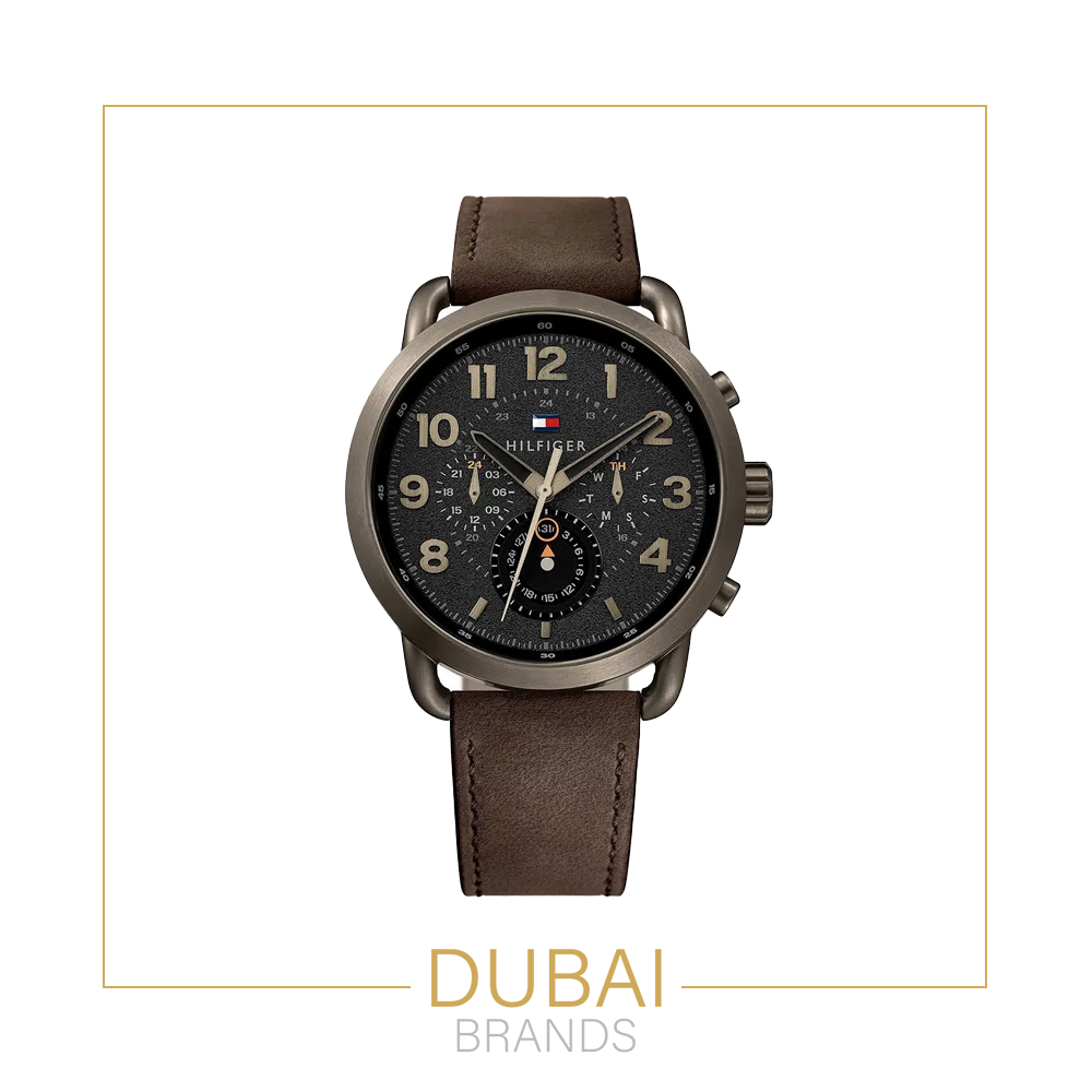 Tommy Hilfiger Briggs Original Multi-Function Watch For Men 1791425 Black Dial Brown Leather Strap