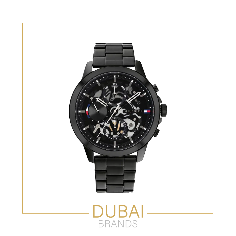 Tommy Hilfiger Henry Original Multi-Function Watch For Men 1710659 Black Skeleton Dial Stainless Steel Bracelet