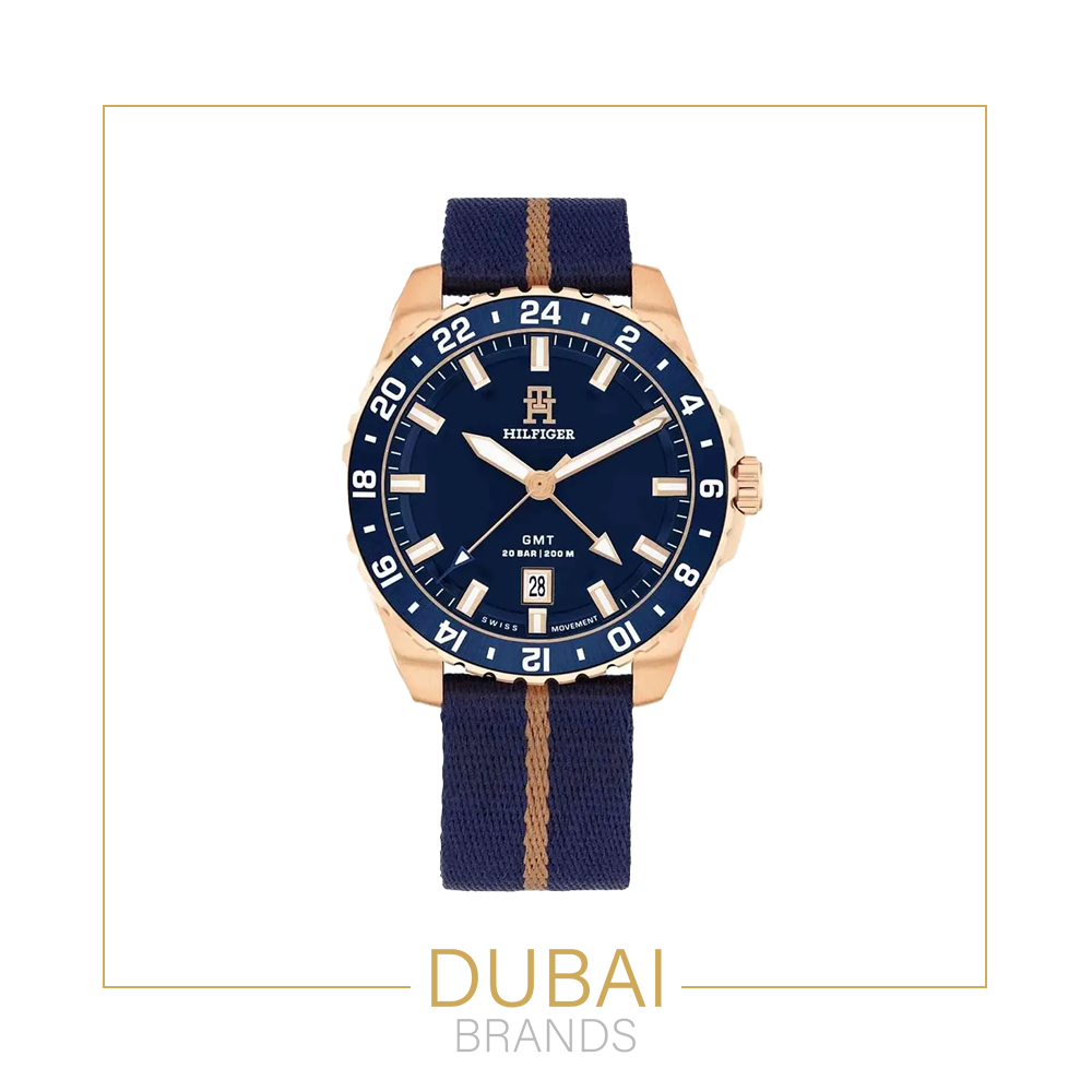 Tommy Hilfiger TH85 Original GMT Watch For Men 1792130 Blue Dial Fabric Strap