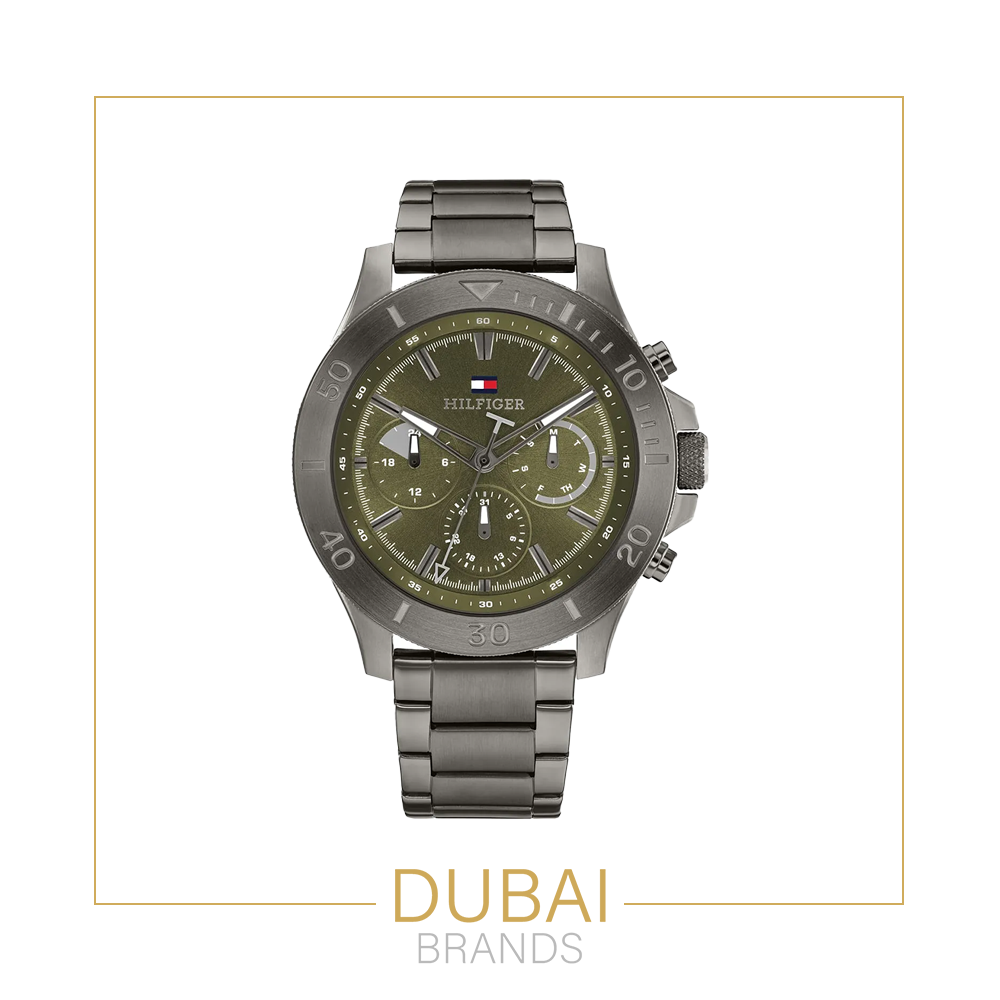 Tommy Hilfiger Original Chronograph Watch For Men TH1792115 Green Dial Stainless Steel Bracelet