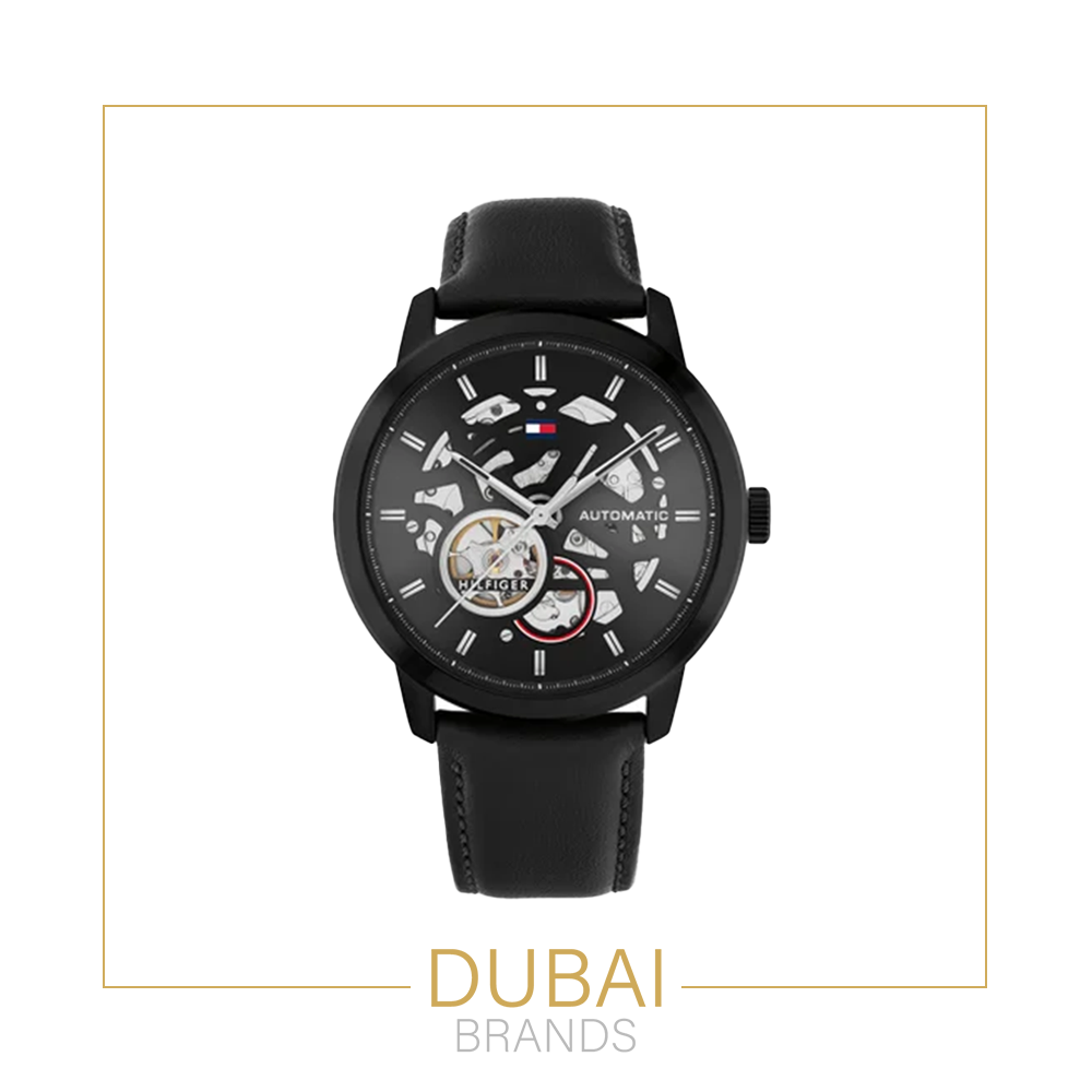 Tommy Hilfiger Henry Original Automatic Watch For Men 1710659 Black Skeleton Dial Black Leather Strap