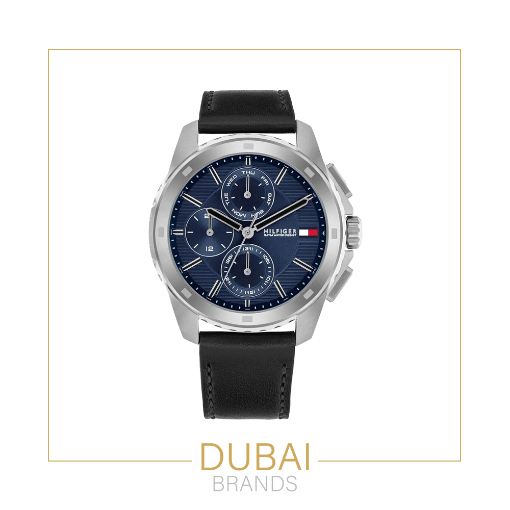 Tommy Hilfiger Walker Original Watch For Men 1710619 Blue Dial Black Leather Strap