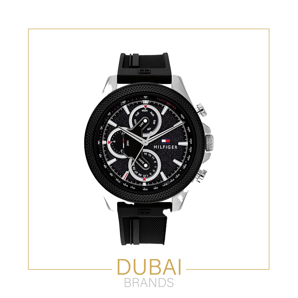 Tommy Hilfiger Clark Original Chronograph Watch For Men 1792082 Black Dial Silicone Strap