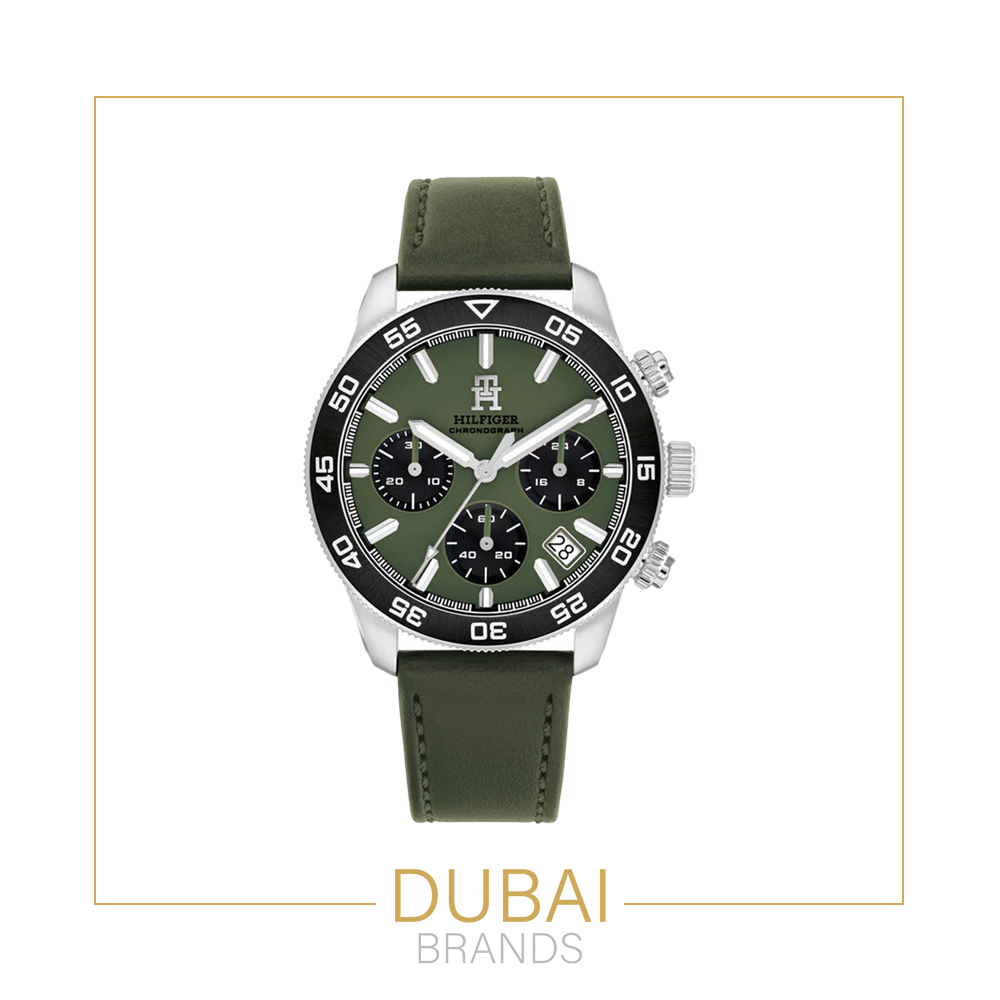 Tommy Hilfiger Original Chronograph Watch For Men 1792188 Green Dial Green Leather Strap