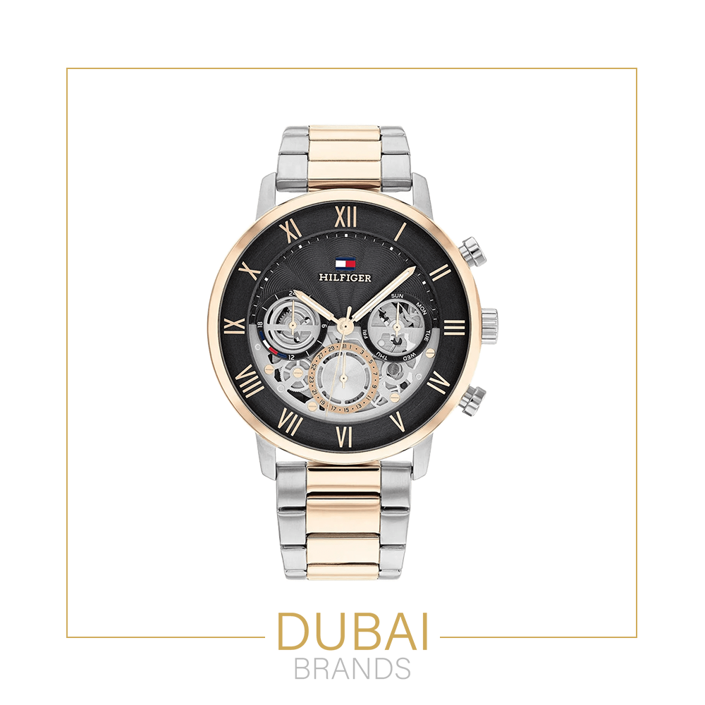 Tommy Hilfiger Legend Original Multi-Function Watch For Men 1710570 Black Dial Two-Tone Stainless Steel Bracelet