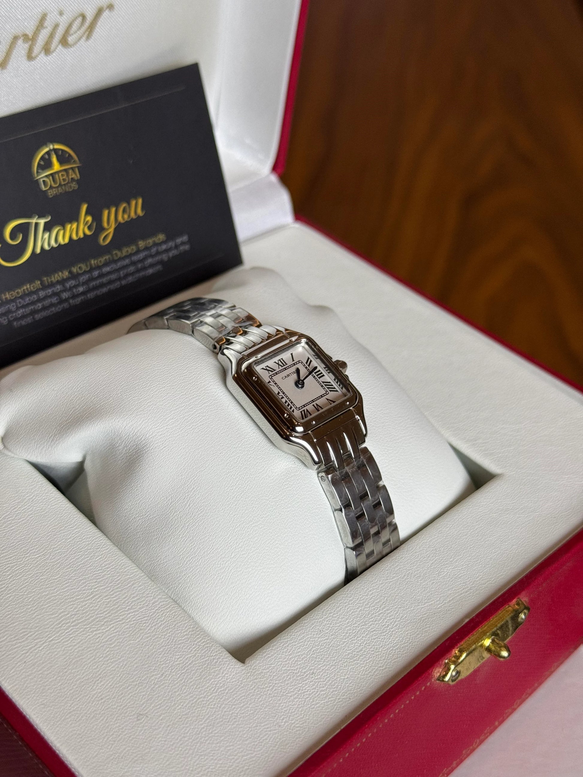 ● Model: Cartier Panthère Style Ivory Roman Dial Stainless Steel Bracelet Quartz