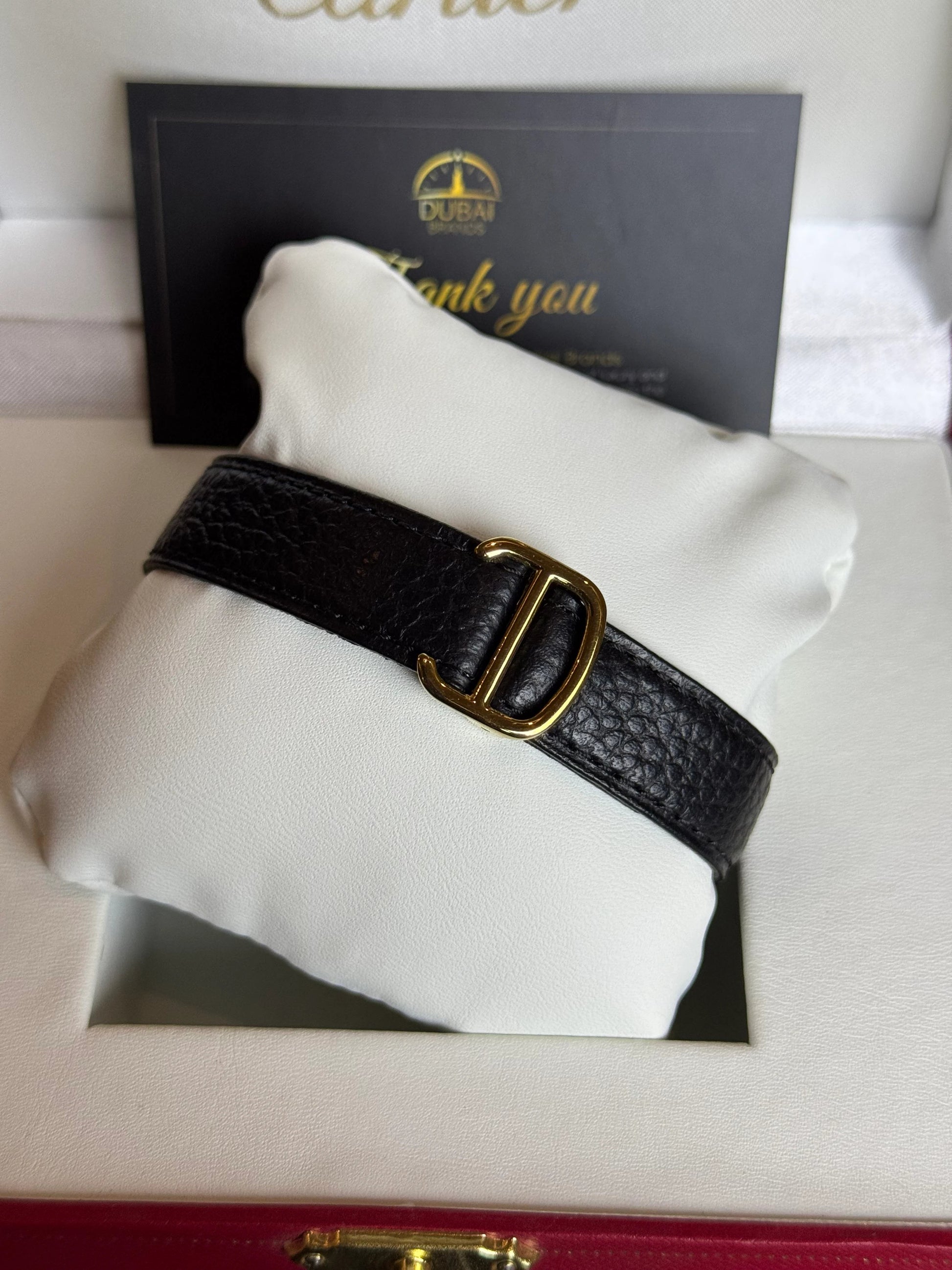 ● Bracelet: Black leather strap