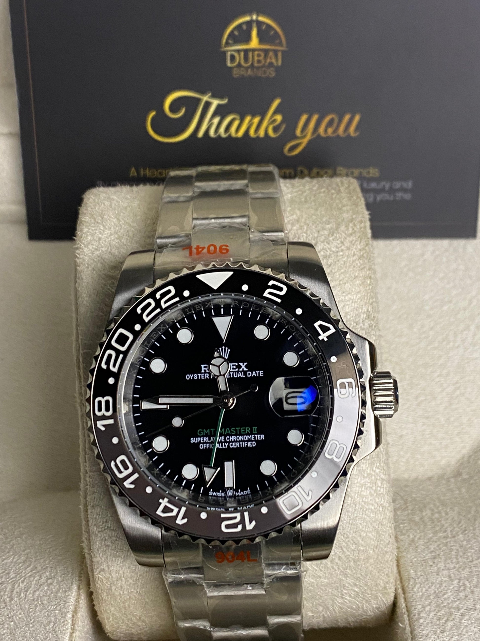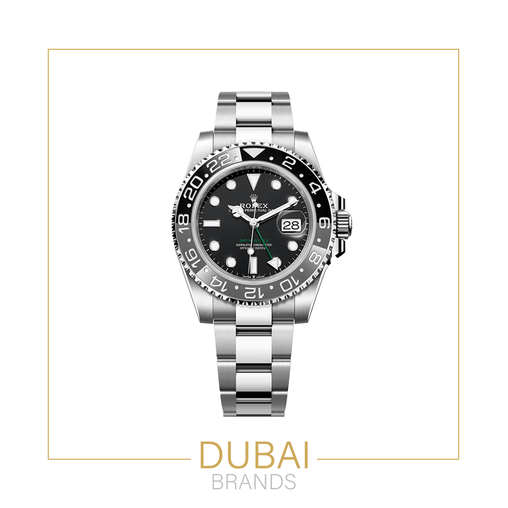 ● Craftsmanship: Clean and classic – Bold black look – Decorative green GMT hand