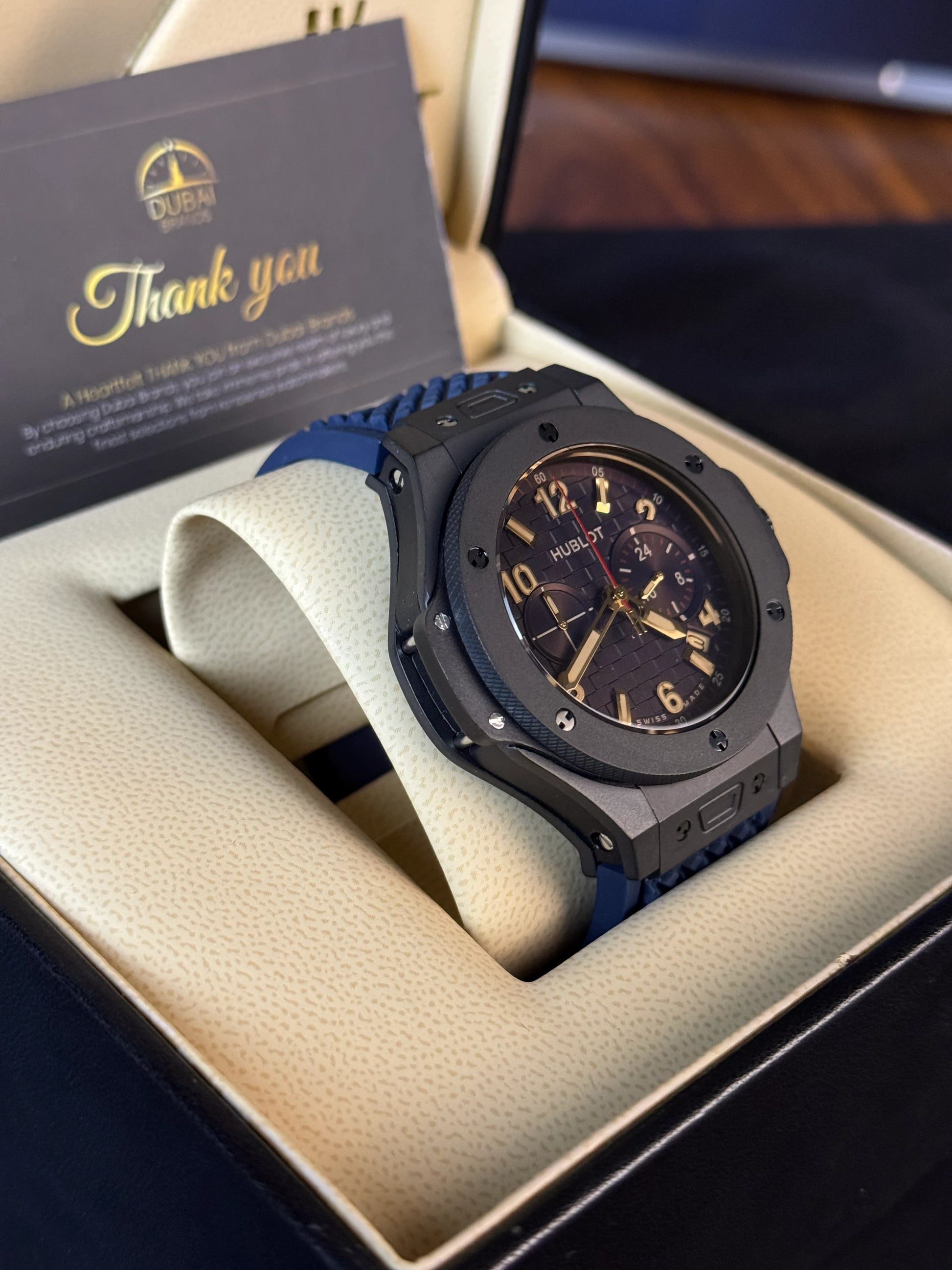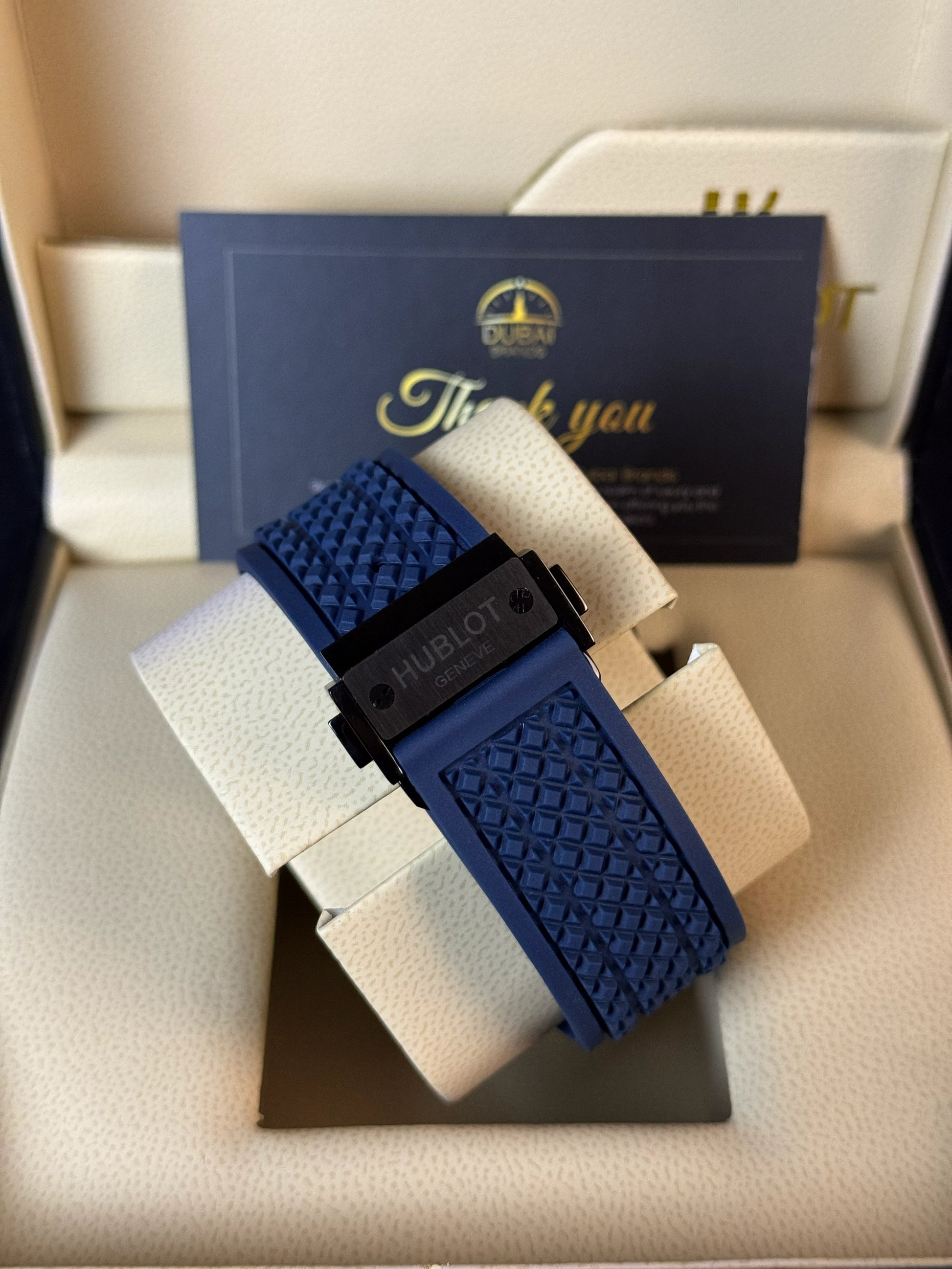 ● Model: Hublot Big Bang Style Chronograph Blue Dial Matte Black Case Blue Rubber Strap