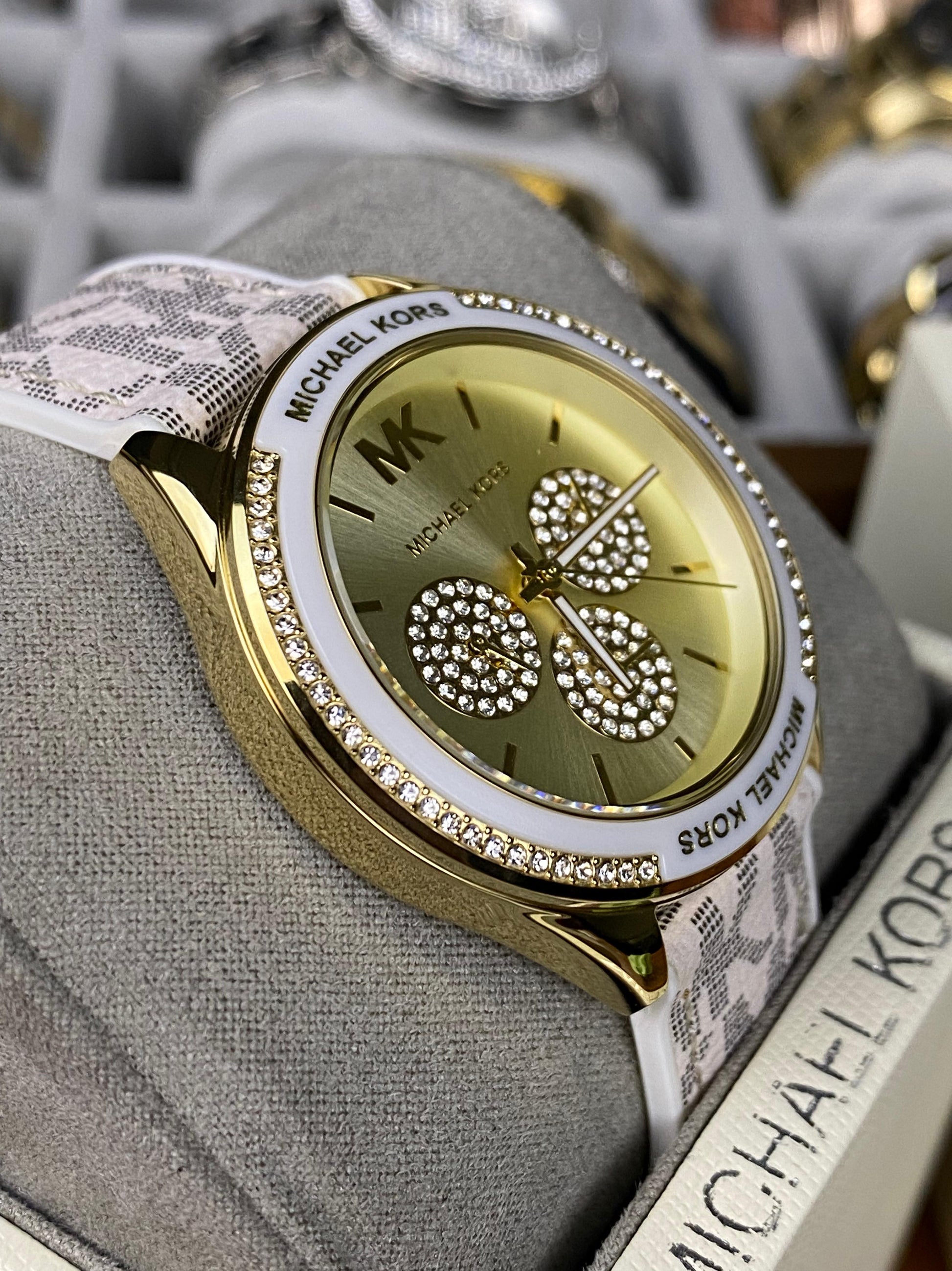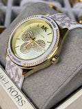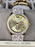 Dial Color: Gold with three crystal-set decorative subdials and MK logo at 12 o’clock