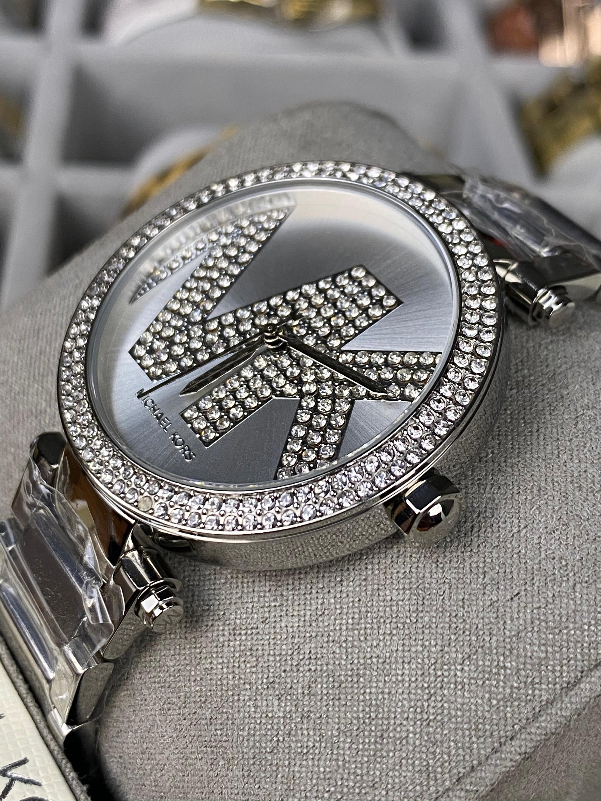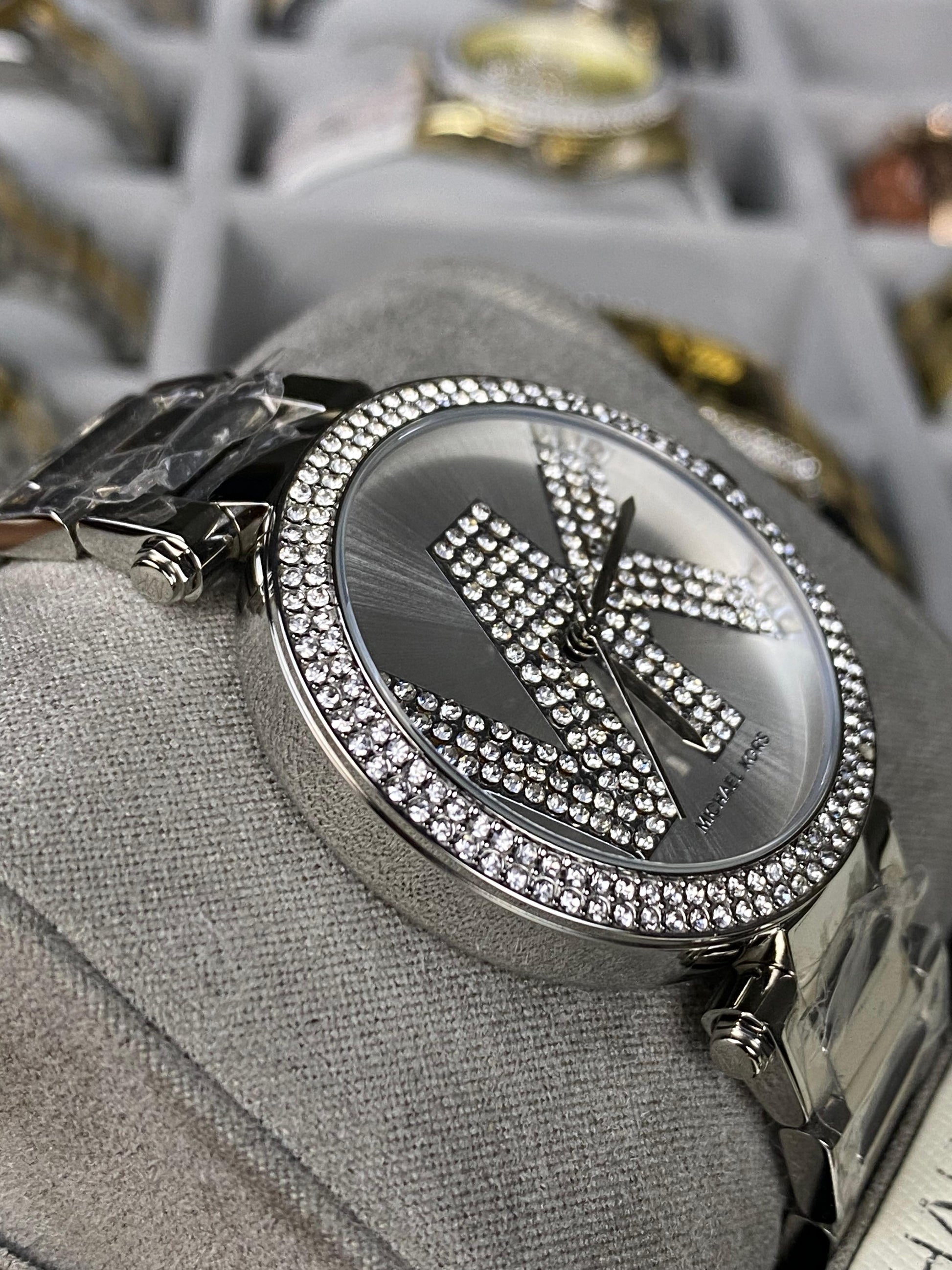 Michael Kors – Silver Dial with Crystal MK Logo – Silver Bracelet – Original