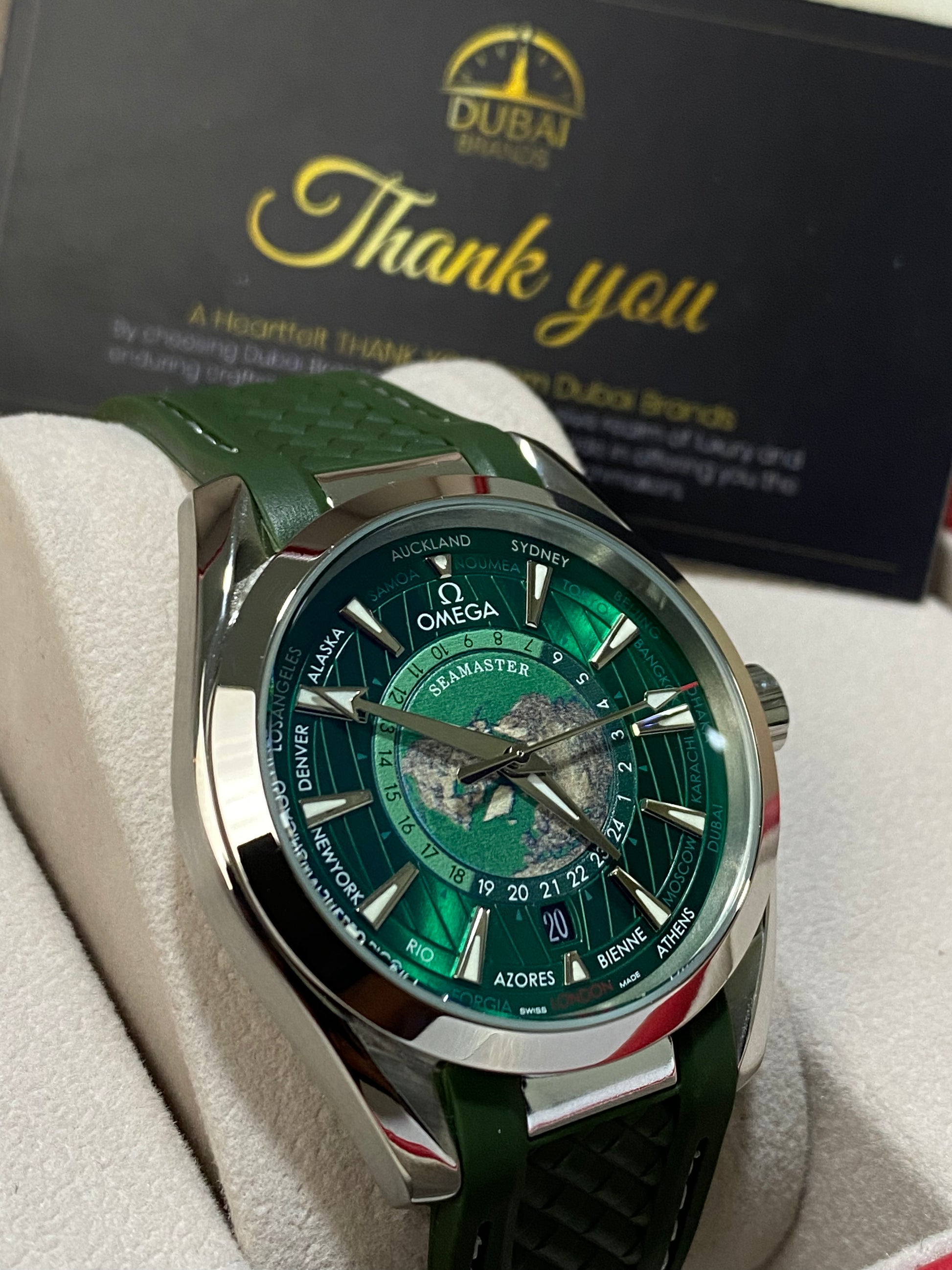 ● Model: Omega Seamaster Aqua Terra Worldtimer – Green Edition