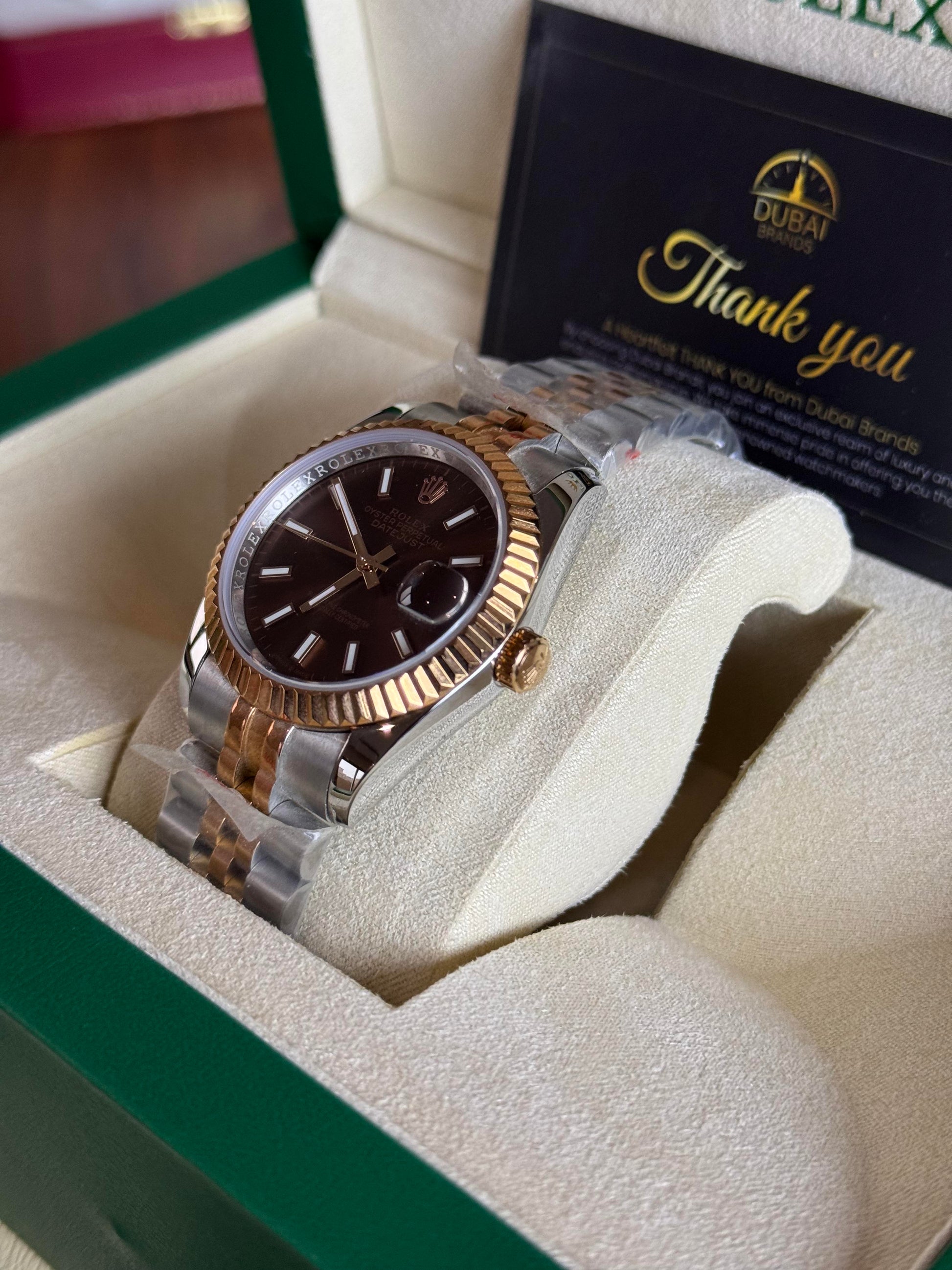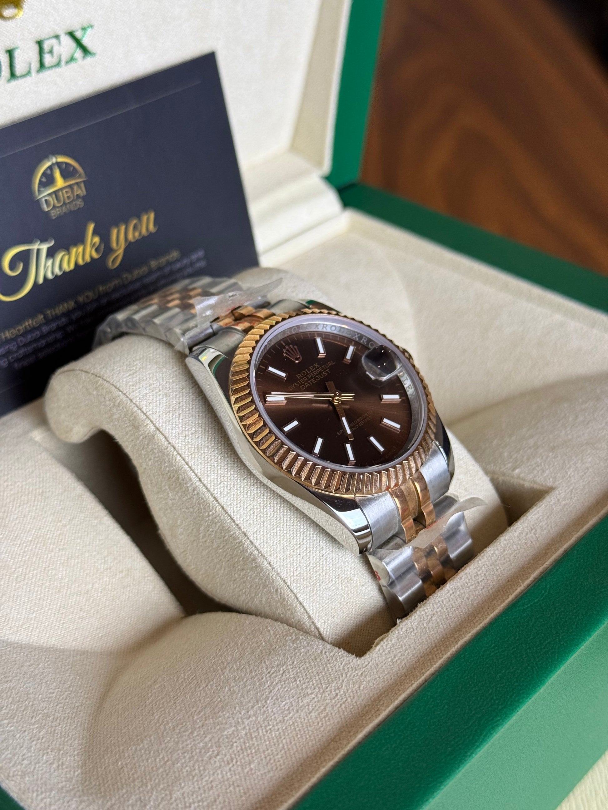 ● Model: Rolex Lady Datejust 31 Chocolate Roman Dial Rose Gold Fluted Bezel Two-Tone Jubilee Automatic