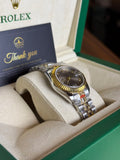 Rolex Datejust 31 Two Tone Chocolate Dial Roman Numerals Diamond VI Fluted Bezel Jubilee Bracelet