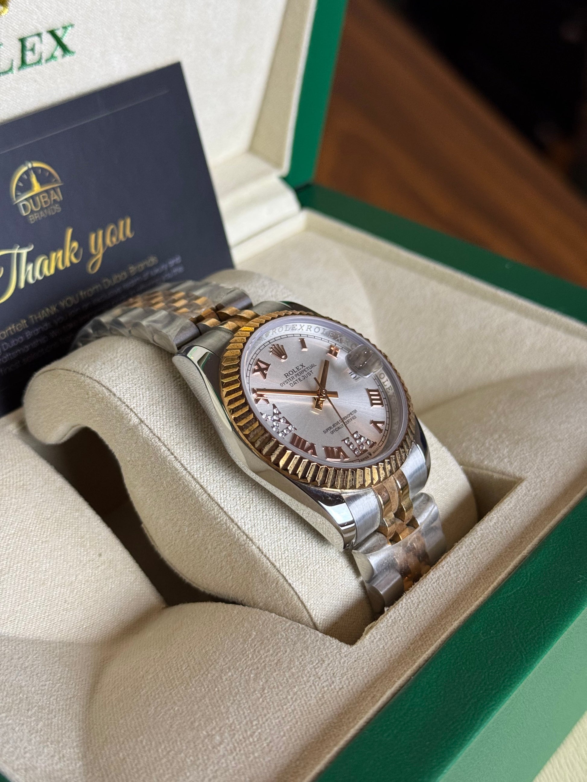 ● Model: Rolex Lady Datejust 31 Roman Diamond Dial Rose Gold Fluted Bezel Two-Tone Jubilee Automatic