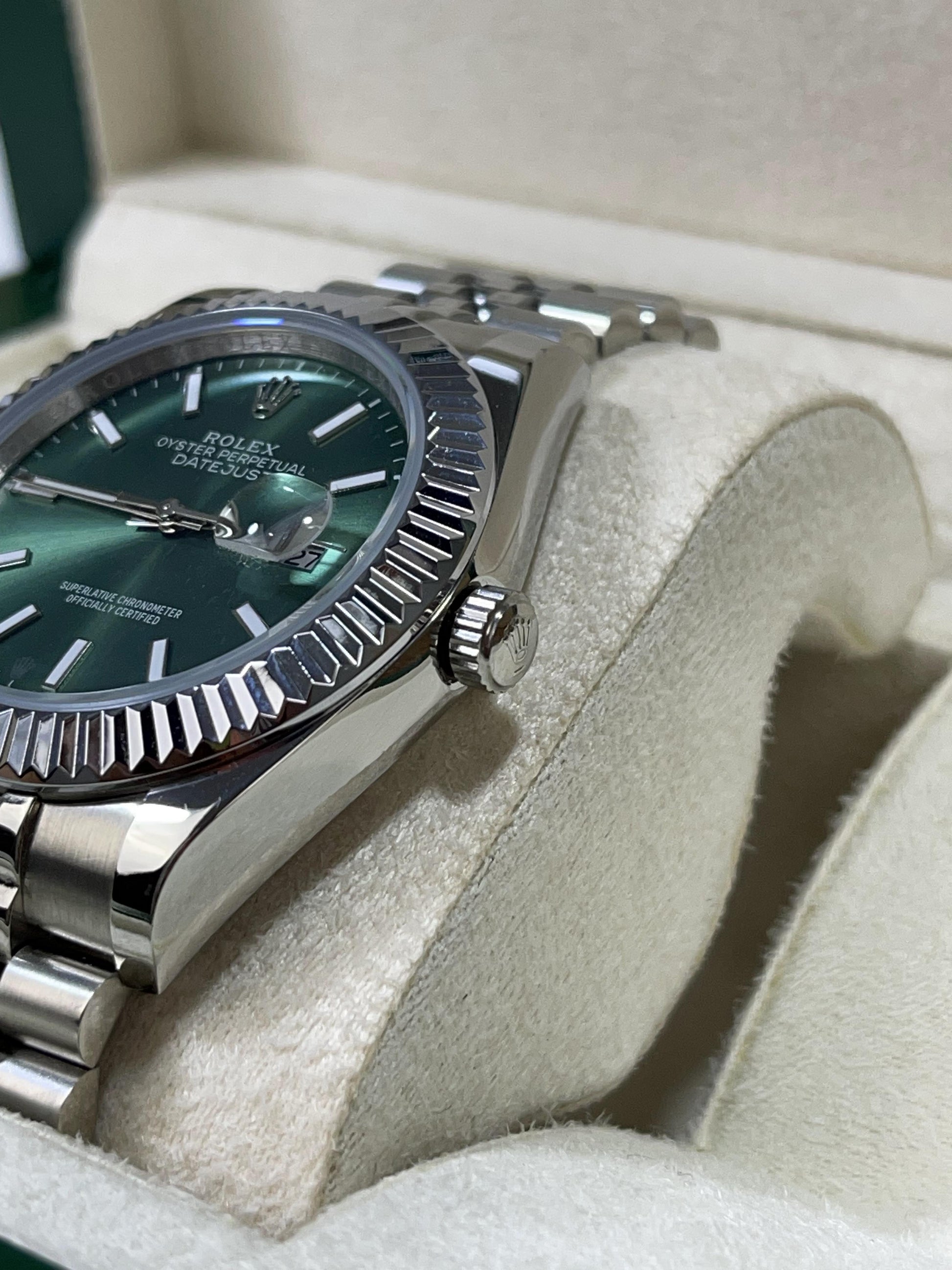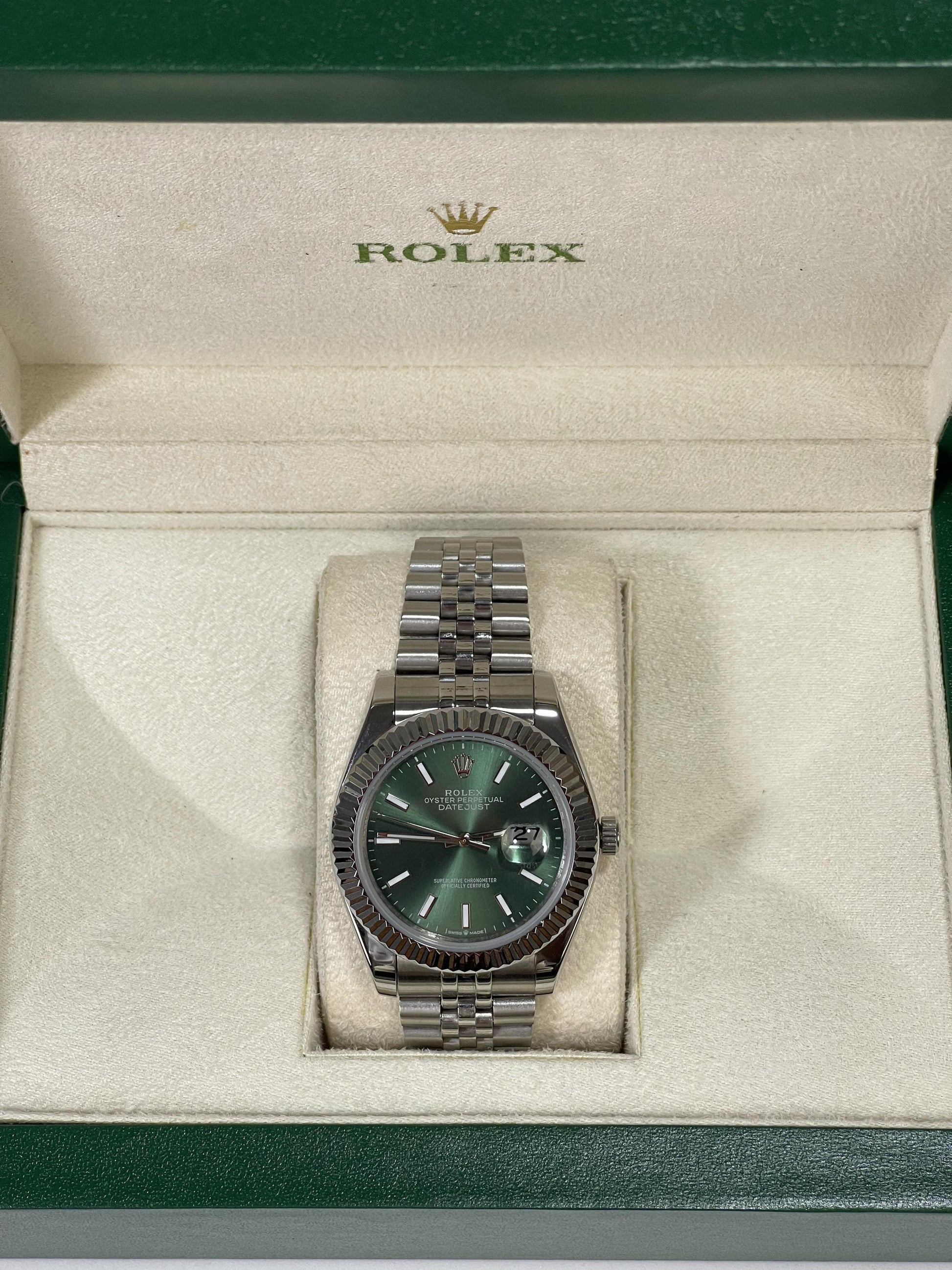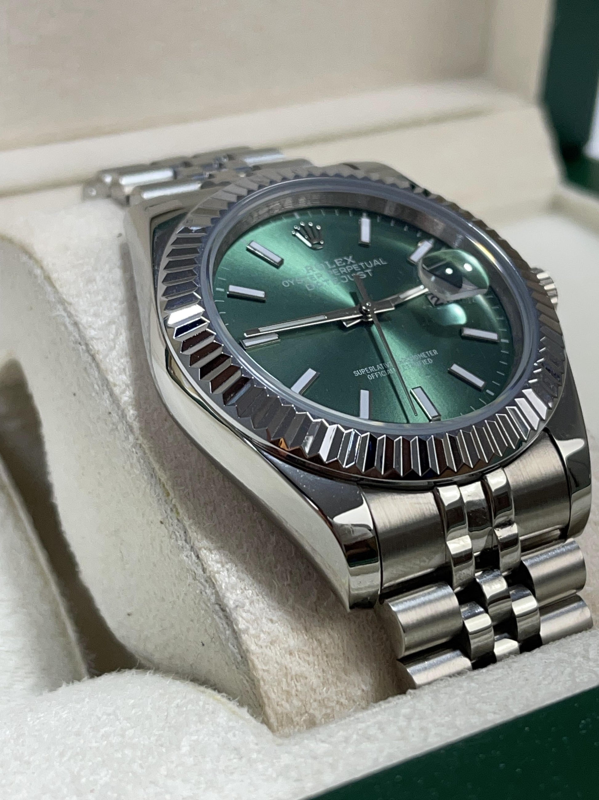 ● Craftsmanship: Elegant & timeless – Unique green dial – Fluted bezel with premium jubilee bracelet finish