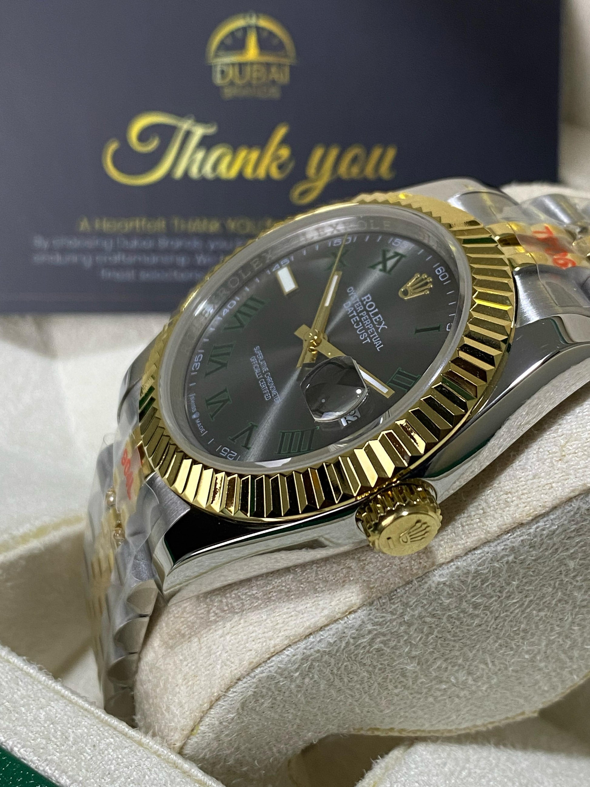 ● Craftsmanship: Timeless two-tone design – Wimbledon signature dial – Luxurious gold detailing with jubilee comfort
