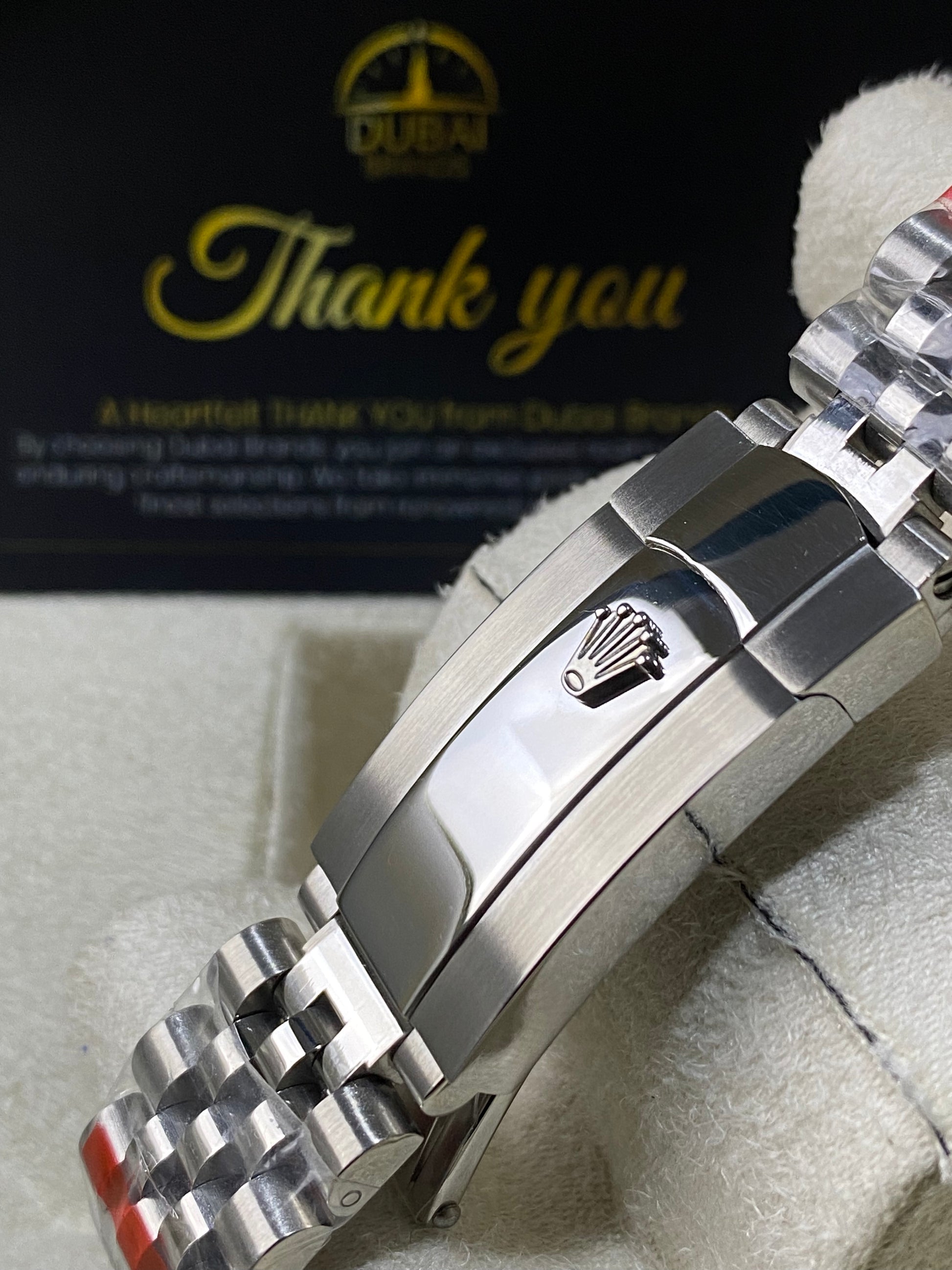 ● Craftsmanship: Clean, understated luxury – Wimbledon green numerals – Full silver tone with classic jubilee elegance