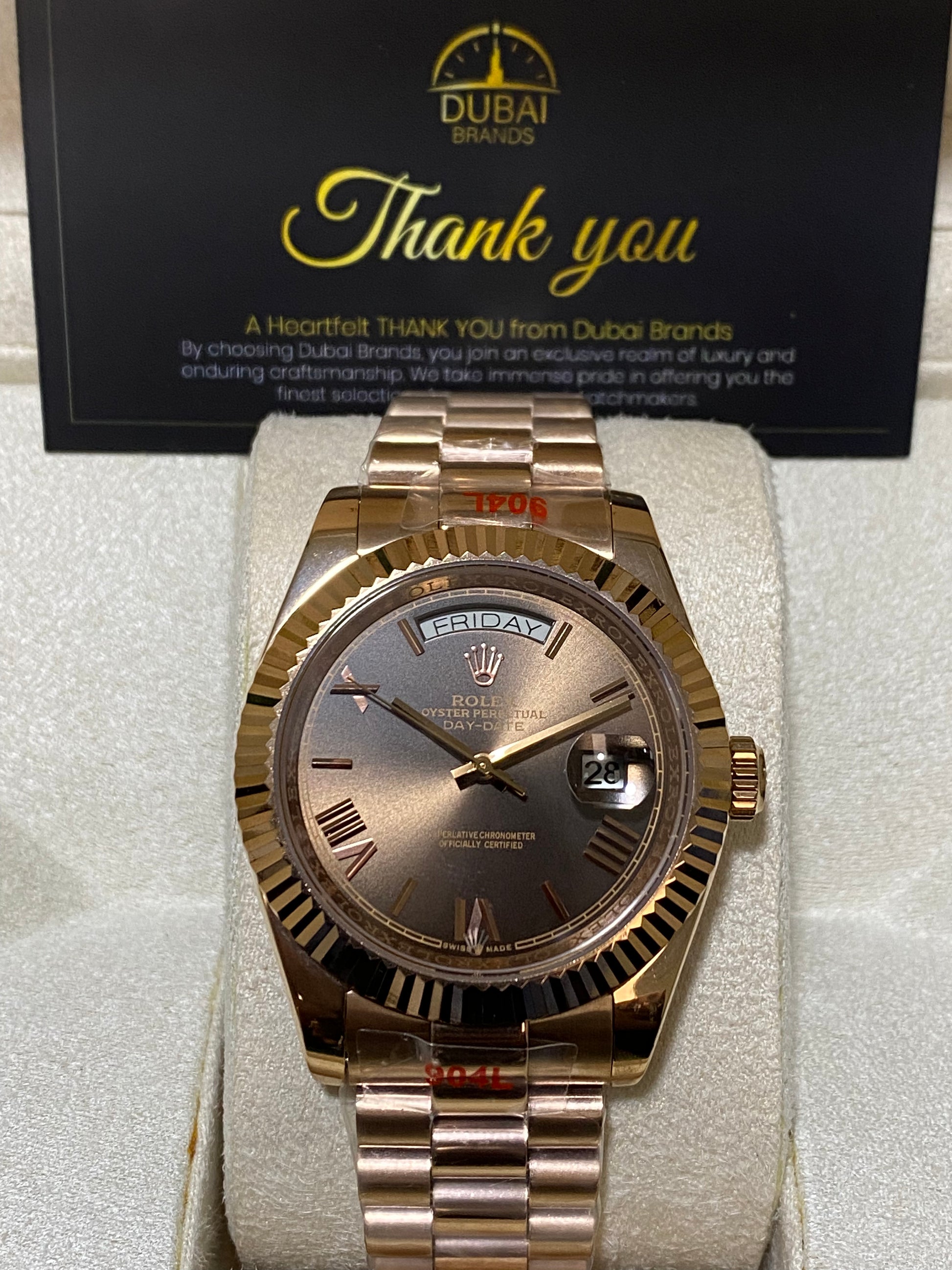 Rolex Day Date 40 Rose Gold Chocolate Dial