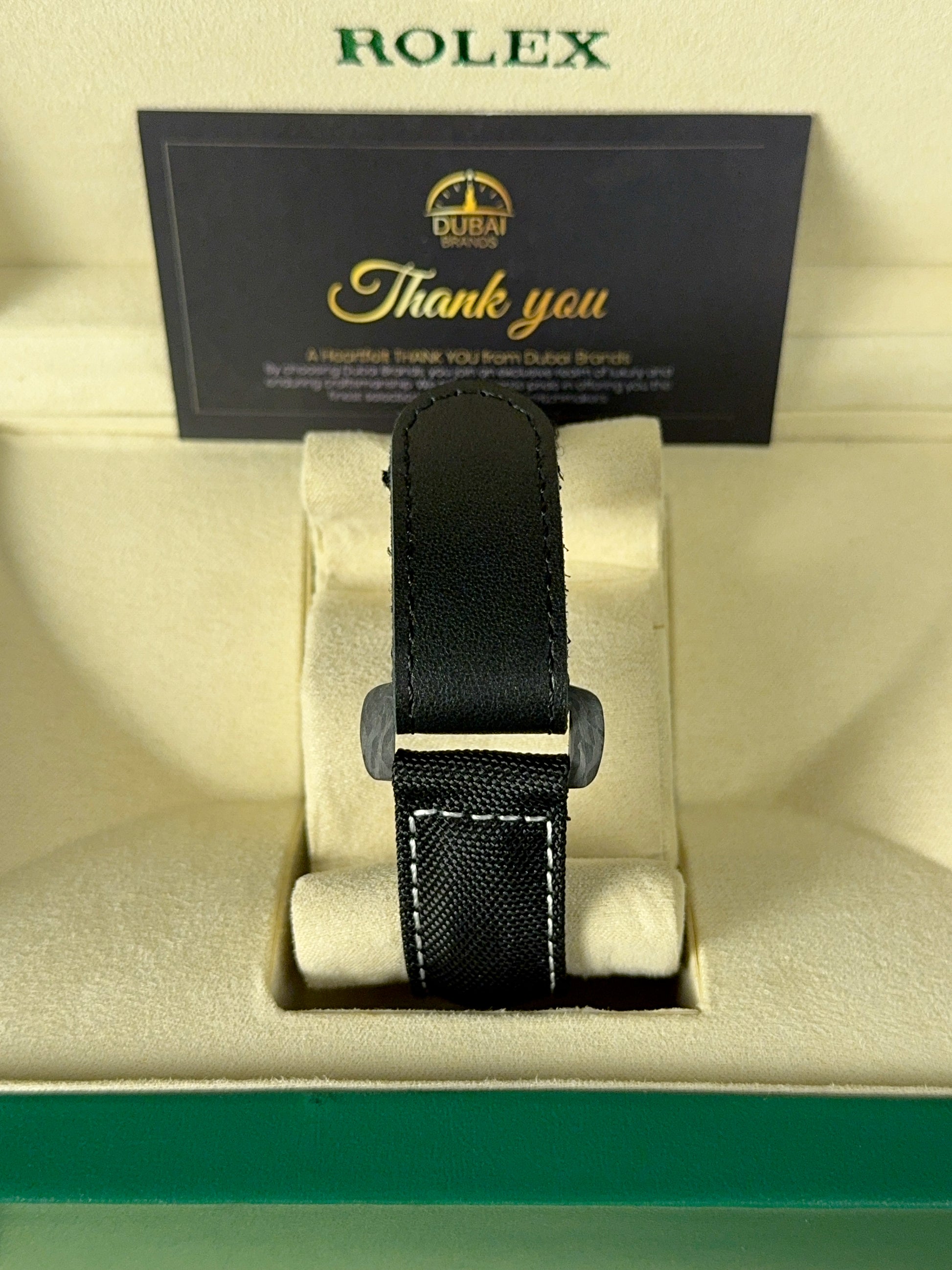● Bezel: Carbon tachymeter bezel (yellow engraved)