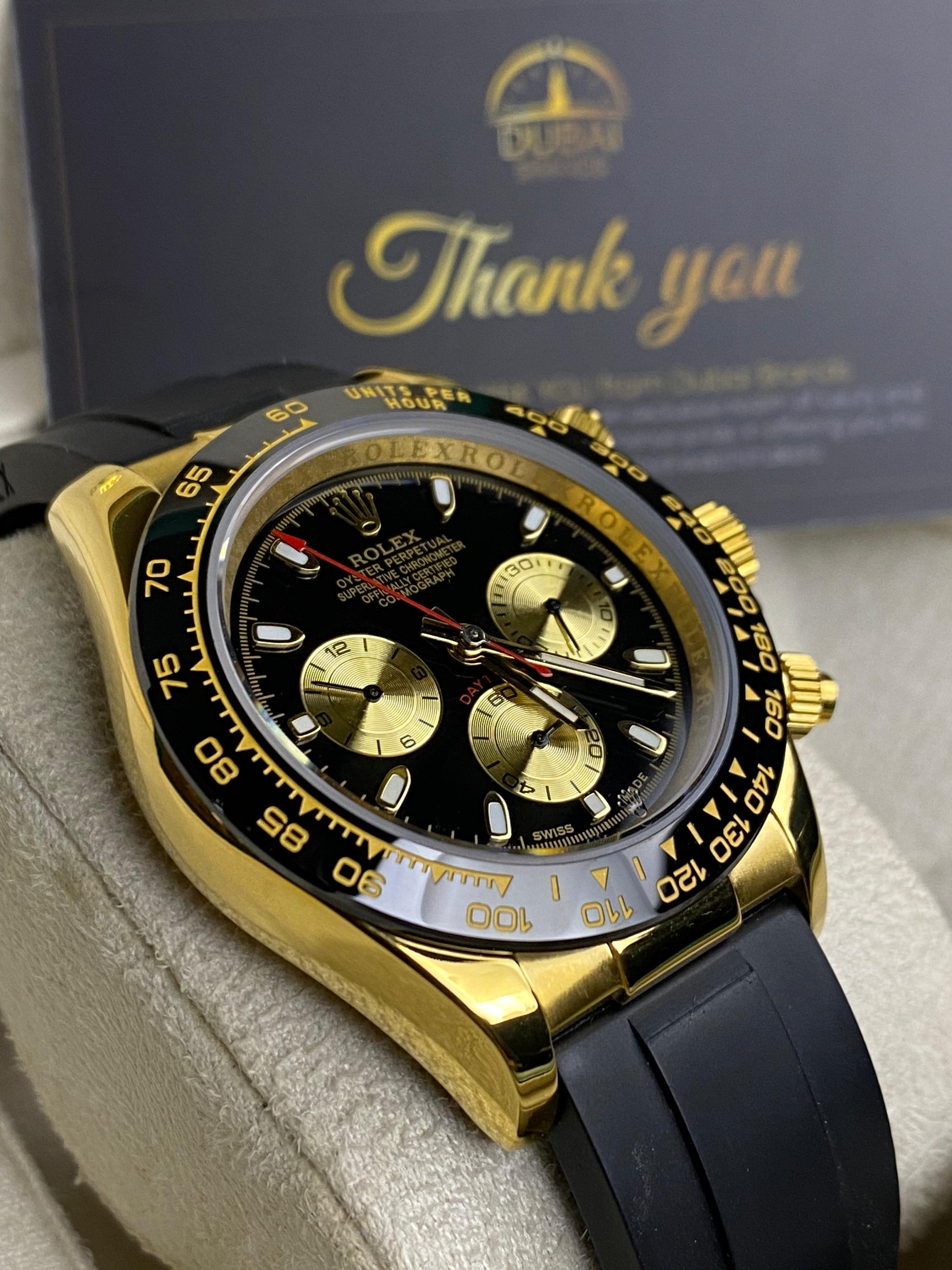 Rolex Daytona Yellow Gold – Black & Champagne Dial Rubber Strap