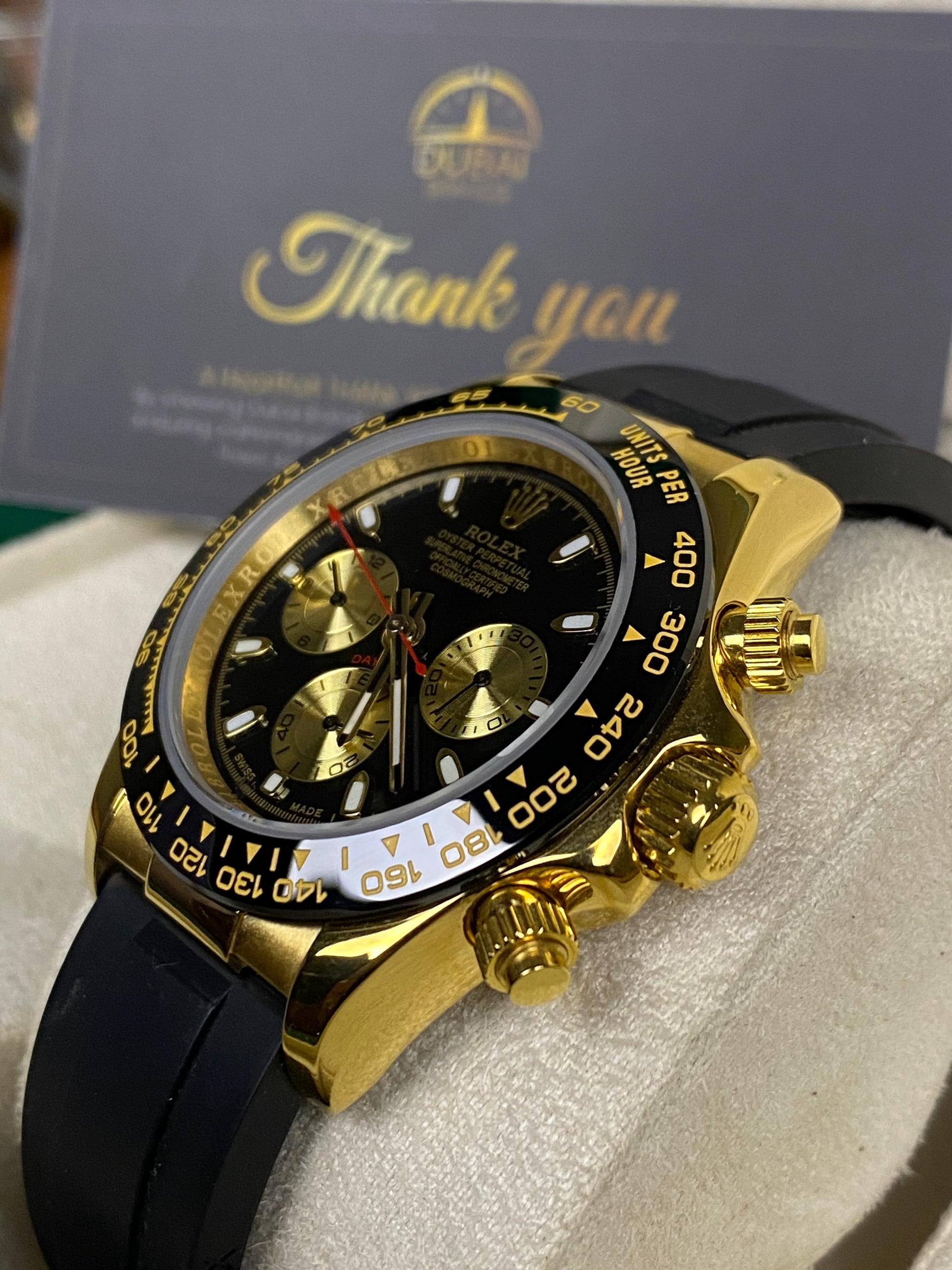 ● Model: Rolex Daytona – Black & Champagne Dial – Rubber Strap