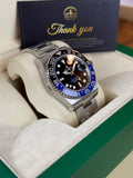 Bezel: Black & blue ceramic bi-directional GMT bezel