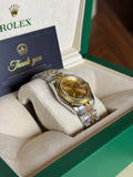 Rolex Lady Datejust 31 Champagne Sunburst Diamond Roman Dial Fluted Bezel Two-Tone Jubilee Automatic