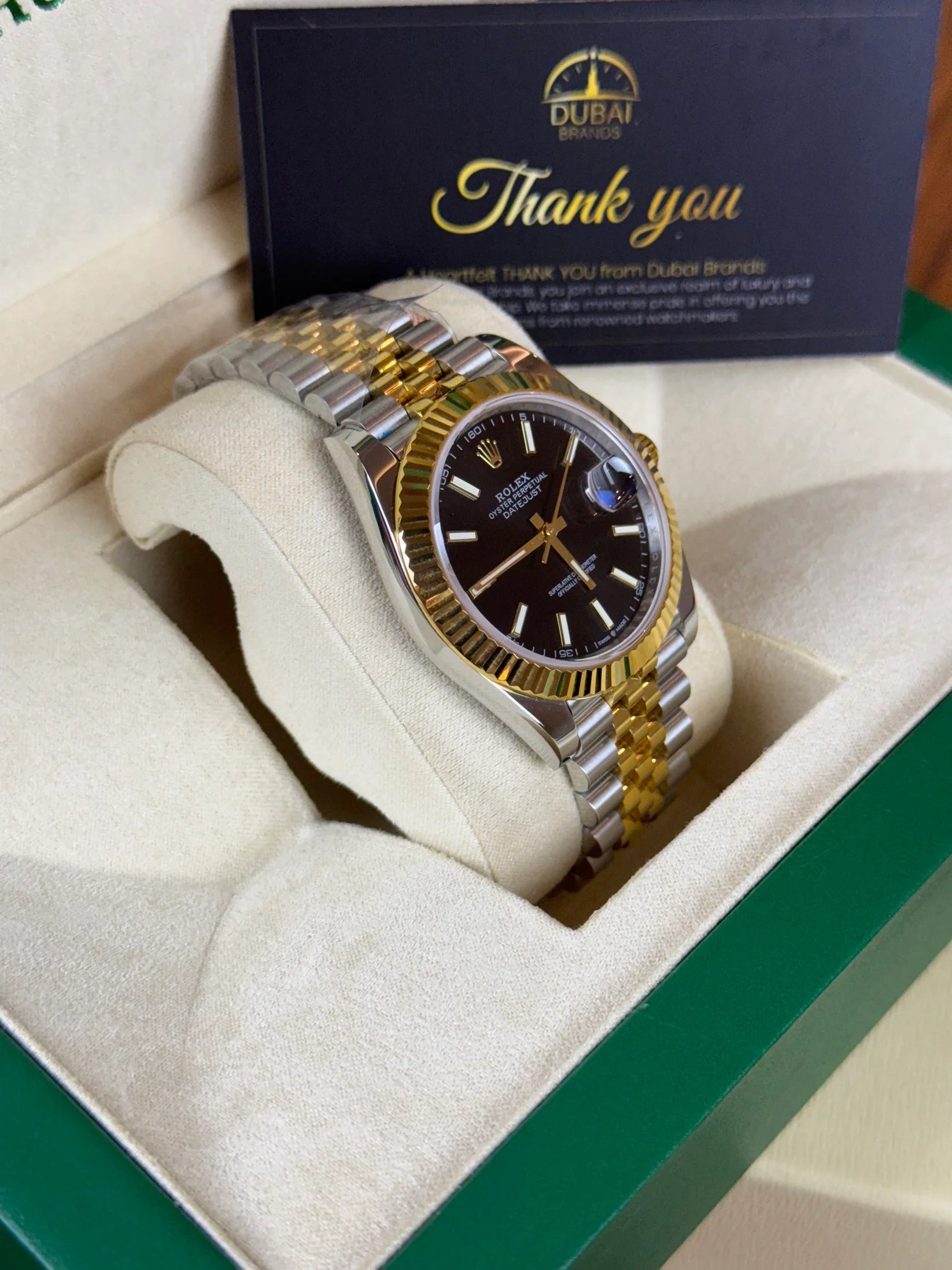 SC Rolex Datejust 41 Two Tone Yellow Gold Black Dial Jubilee Fluted