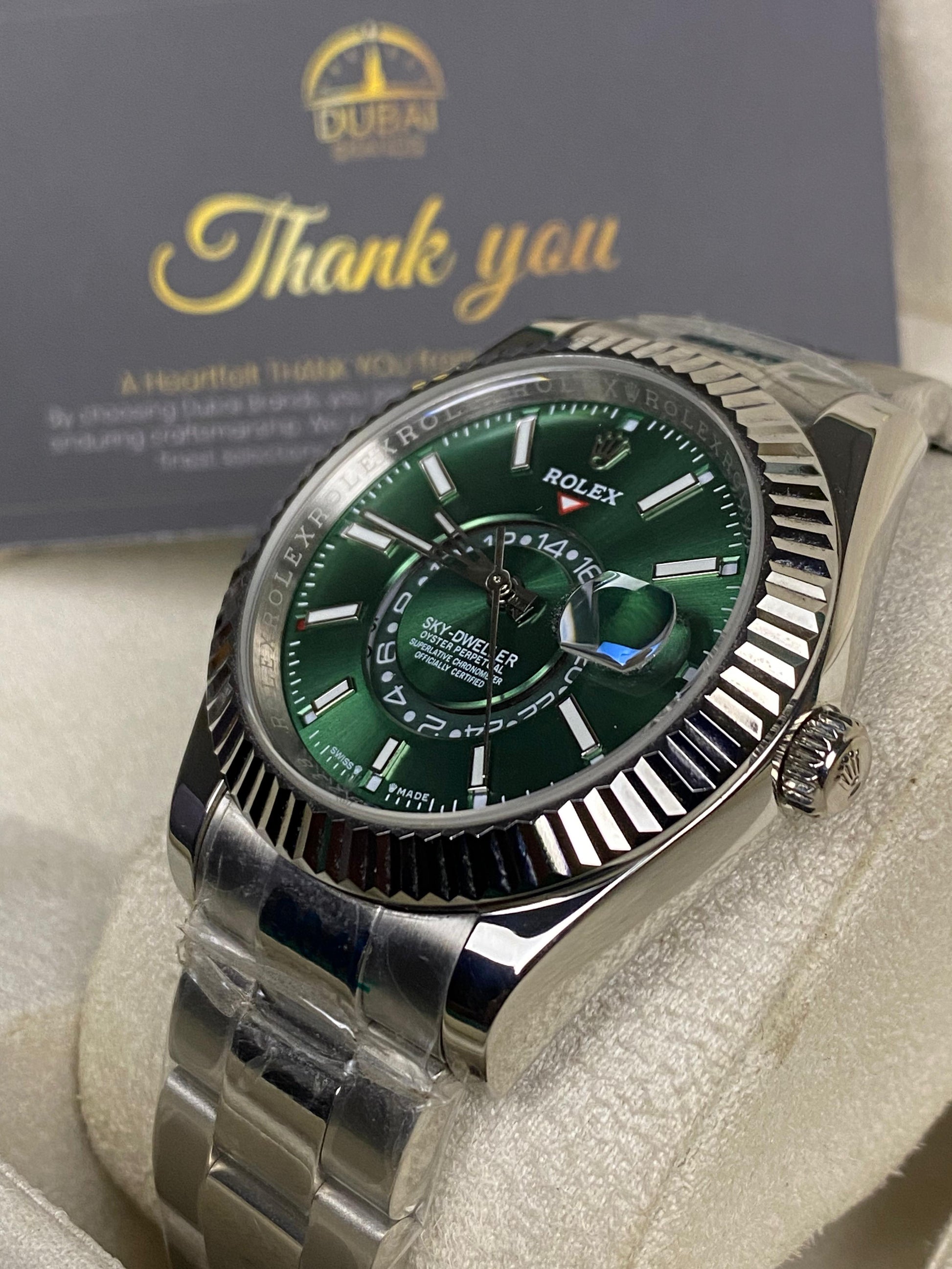 ● Craftsmanship: Advanced luxury – Annual calendar + dual time zone – Premium green dial with professional detailing