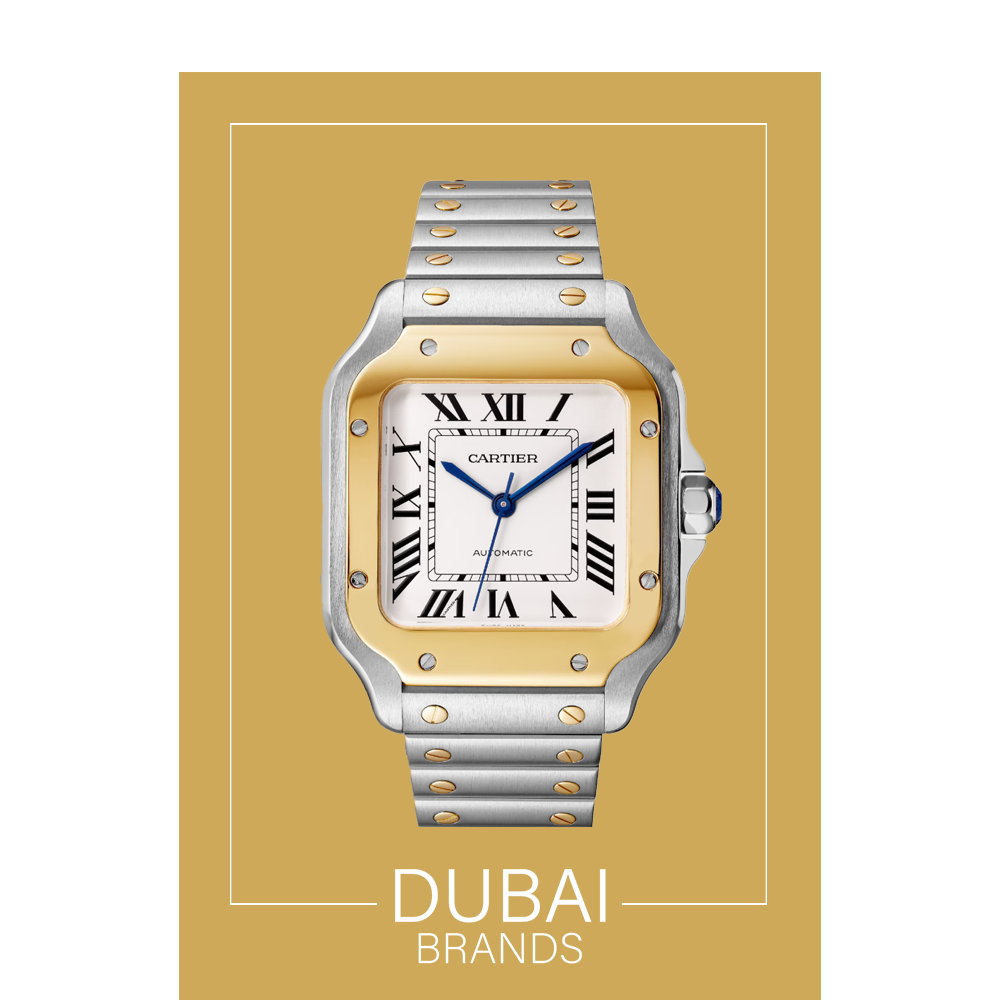 Bezel: Iconic square bezel in a golden finish with exposed functional screws.