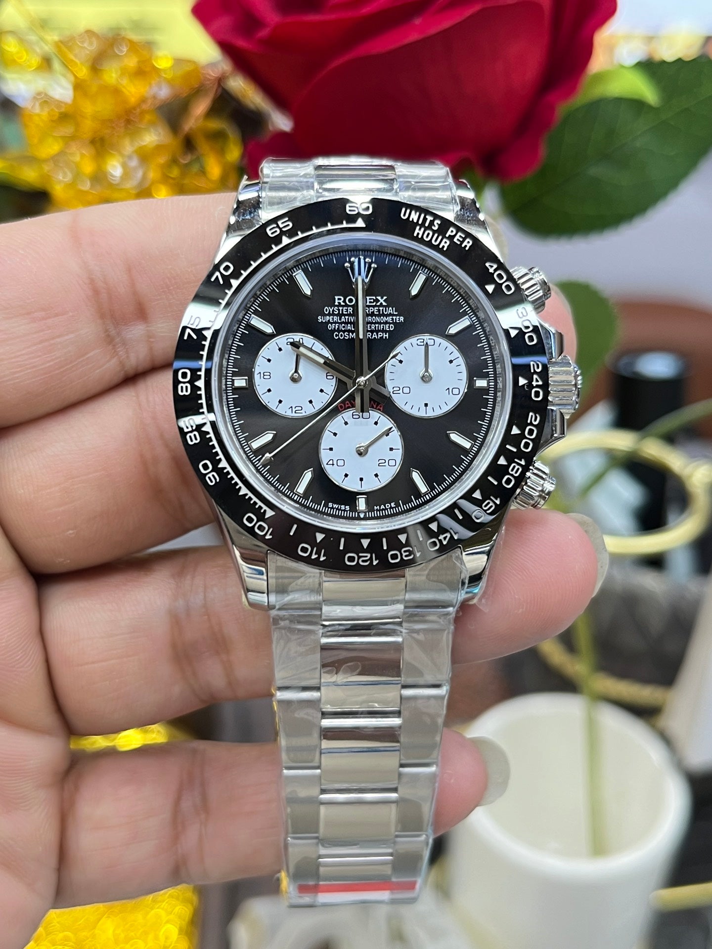 ● Bezel: The latest V3 Clean black ceramic tachymeter bezel, real platinum plated correct markers, same shape and depth as genuine bezel;
